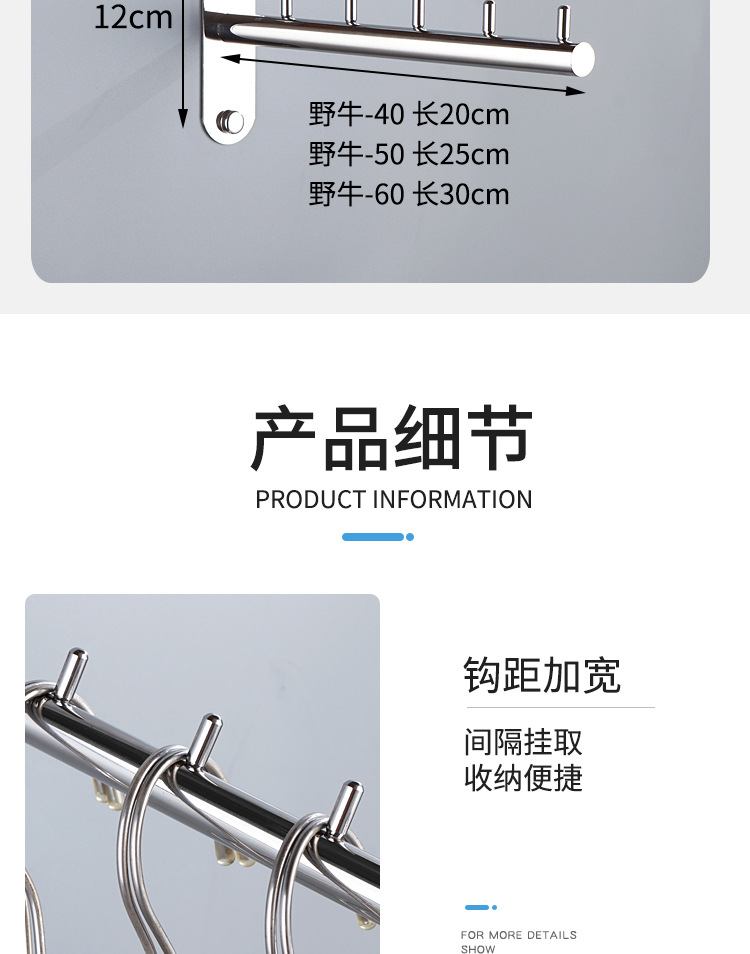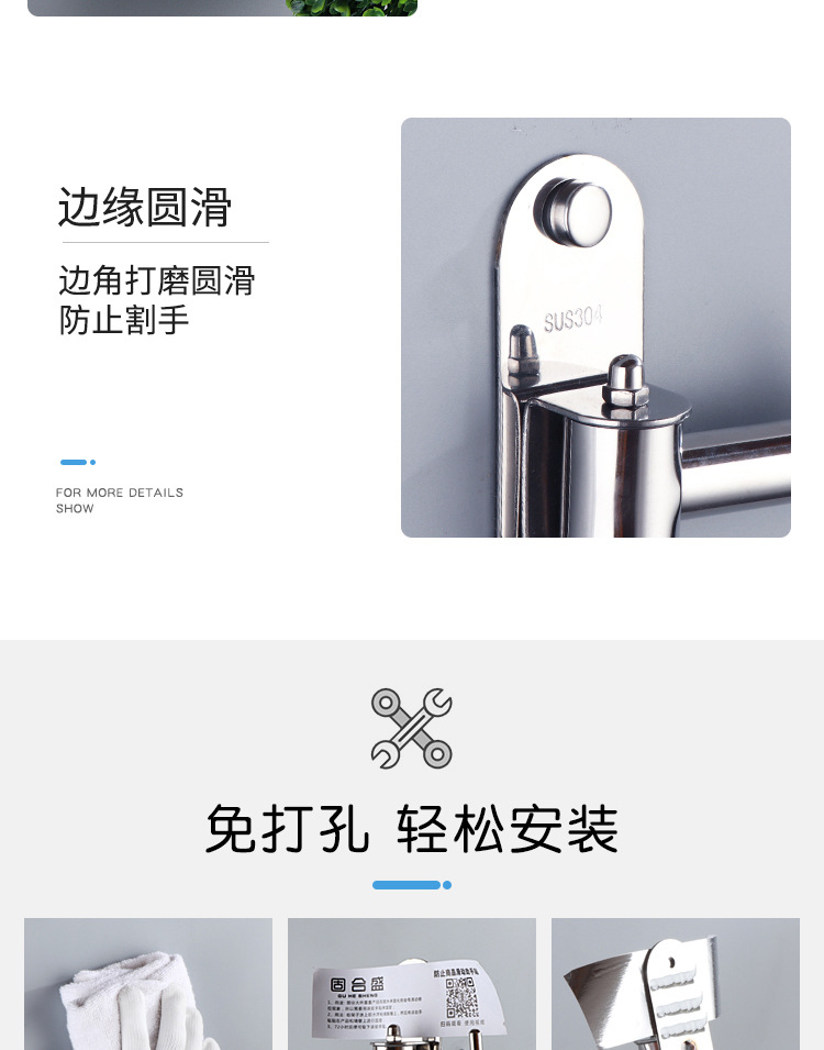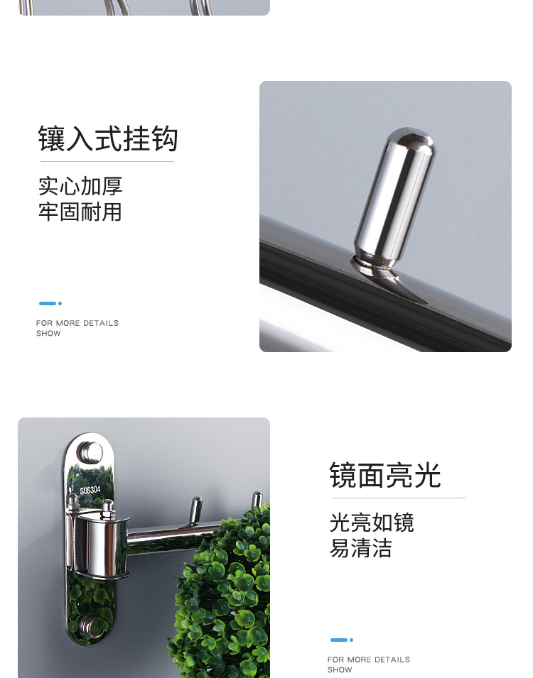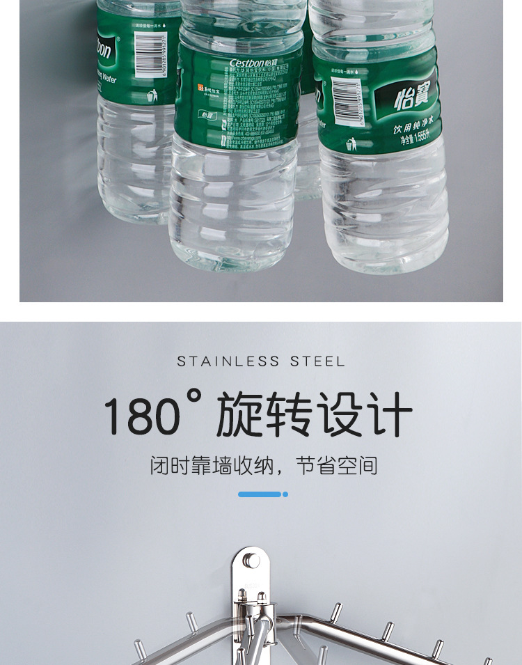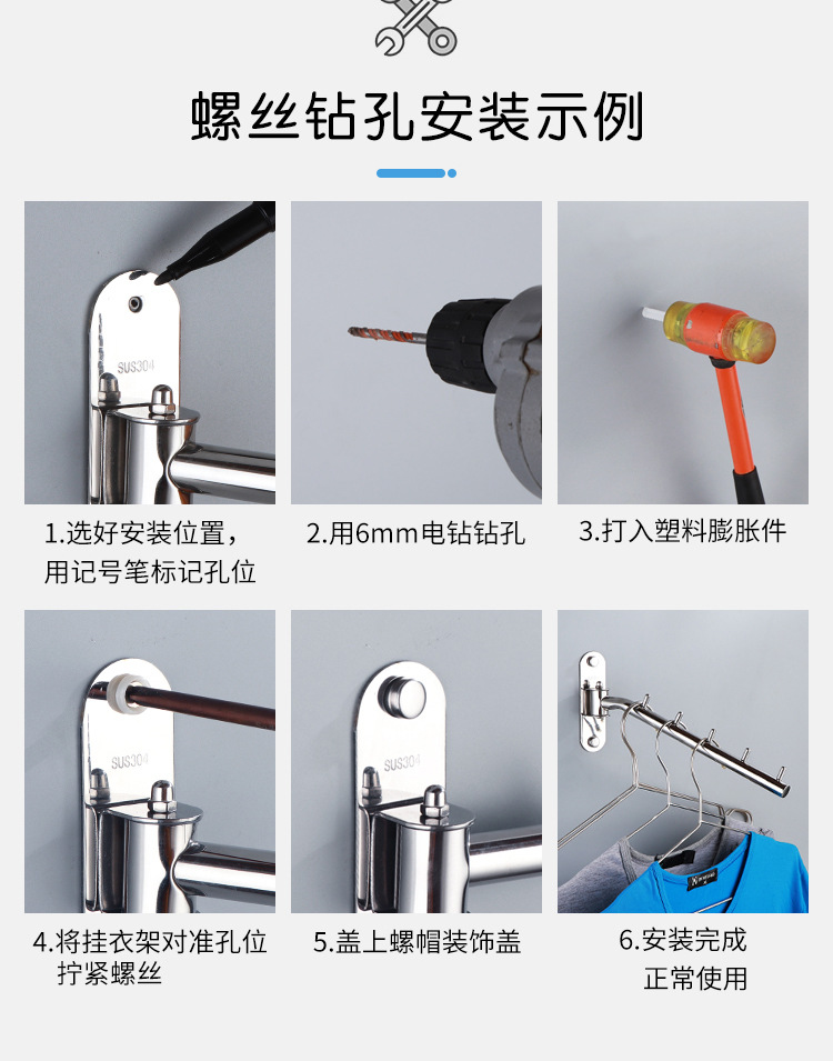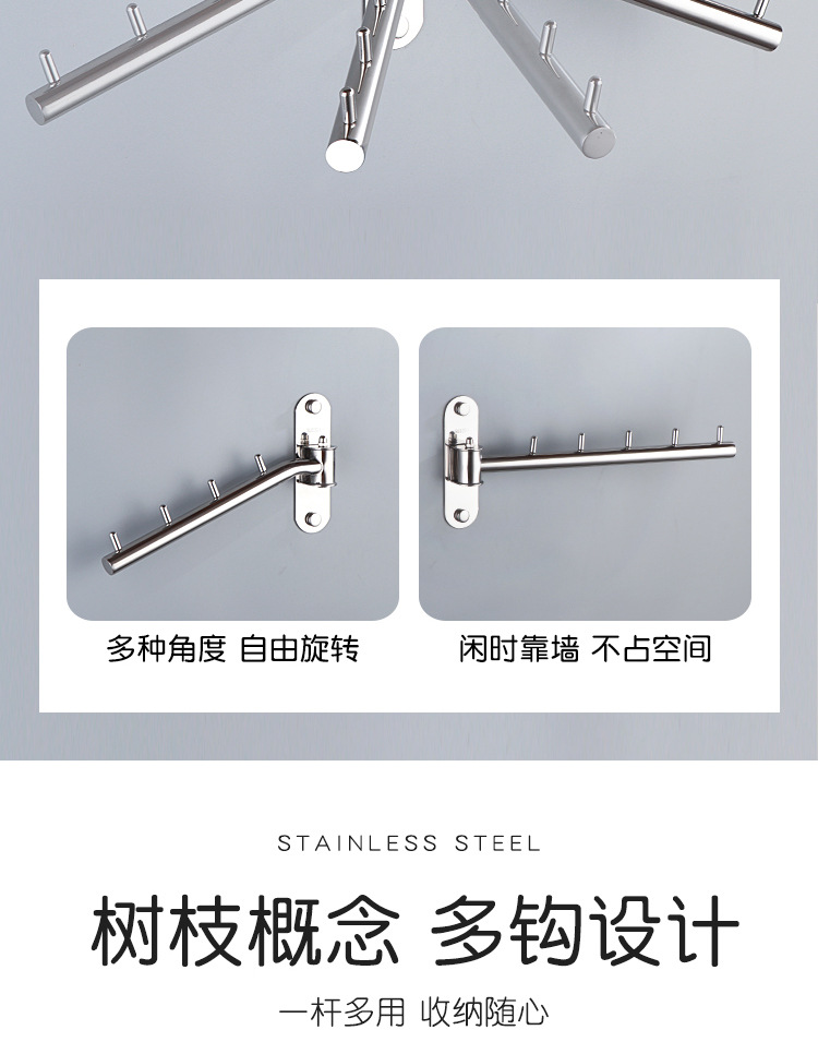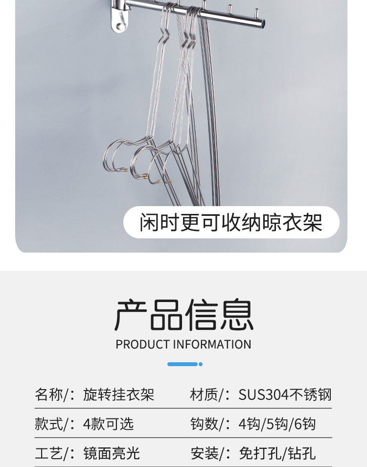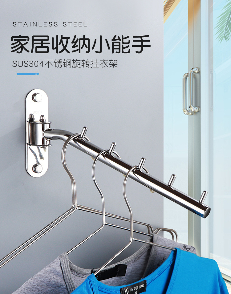 304 Stainless Steel Activity Punch-free Bedroom Hotel Wine Balcony Shop Rotating Clothes Rod Hook Swinging Clothes Rod