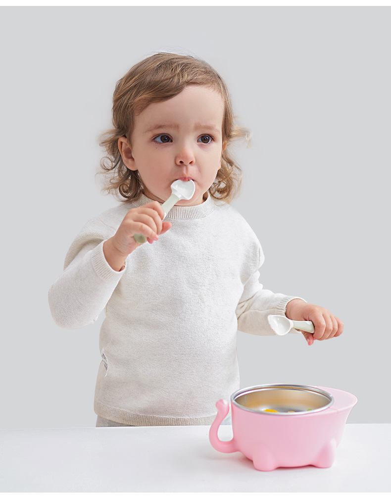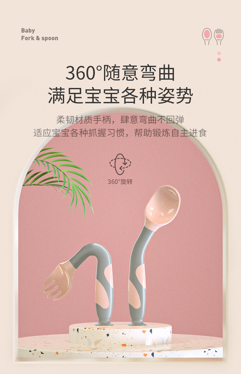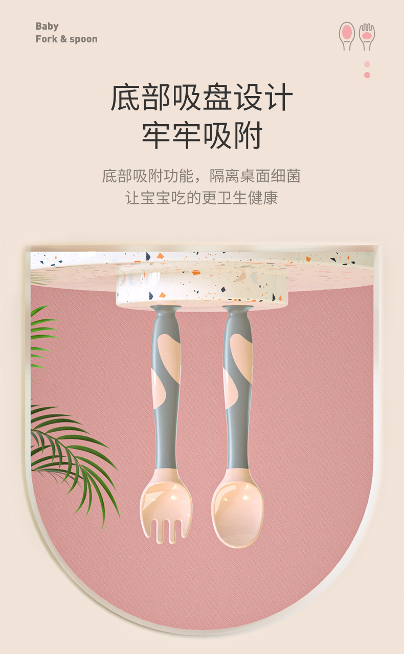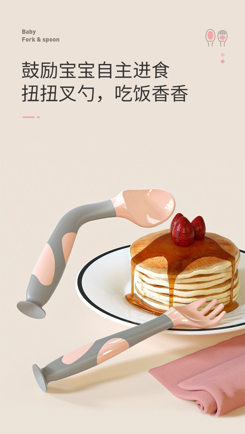 Suction Cup Twisting Spoon Children's Fork Spoon Baby Spoon Tableware Baby Licking Spoon Complementary Food Training Spoon Food Grade