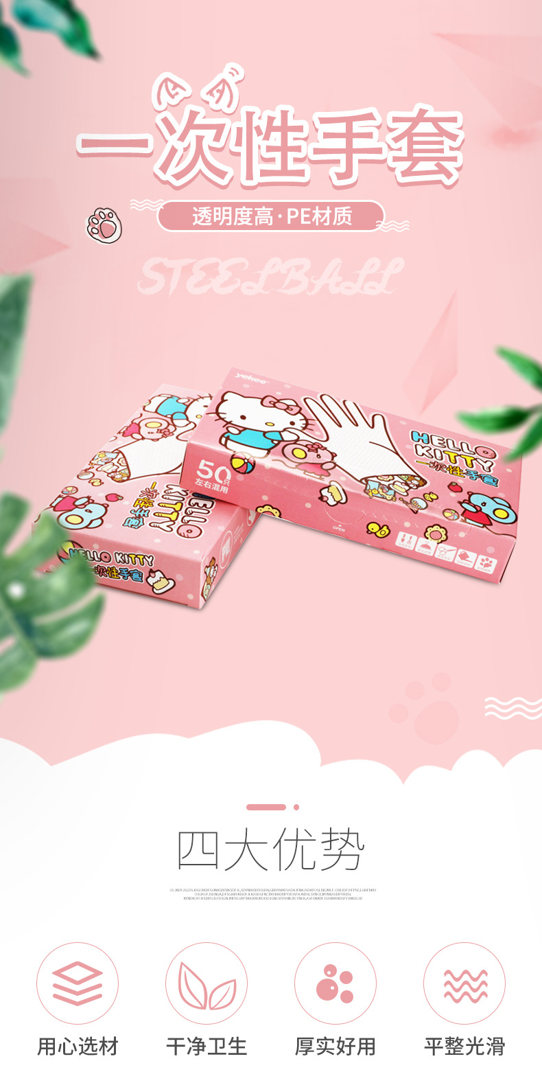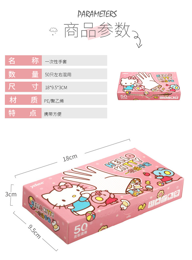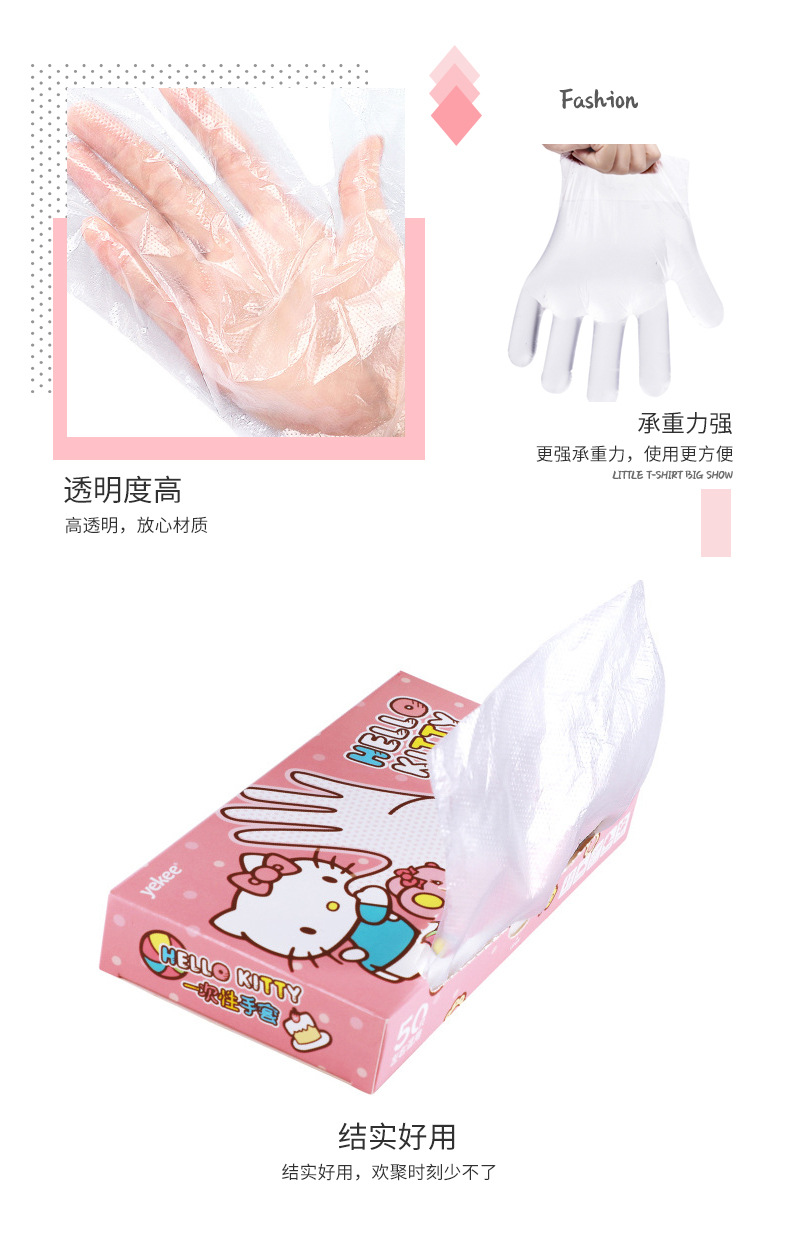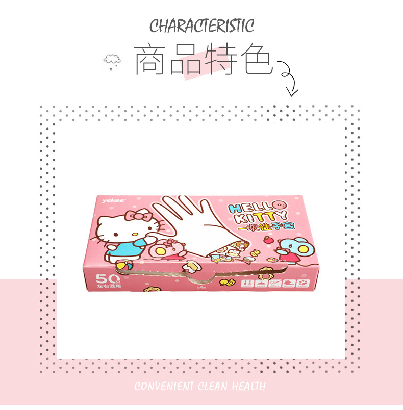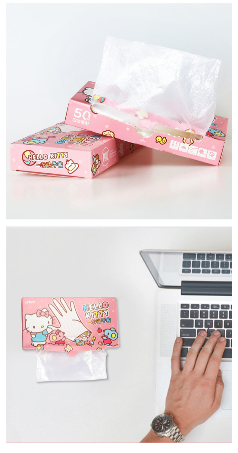 Sanrio Hellokitty Boxed Disposable Gloves Food Grade Disposable Pe Gloves for Home and Commercial Wholesale