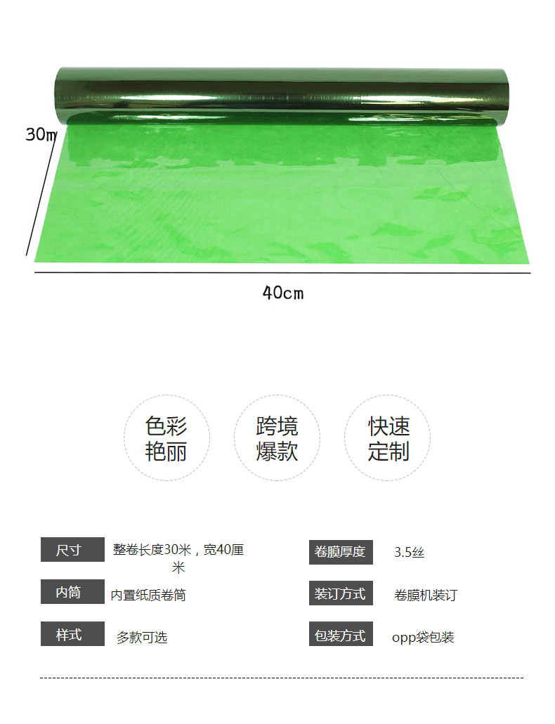 Cross-border new color cellophane roll film flower packaging material 40cm wide gift flower packaging roll film 30m