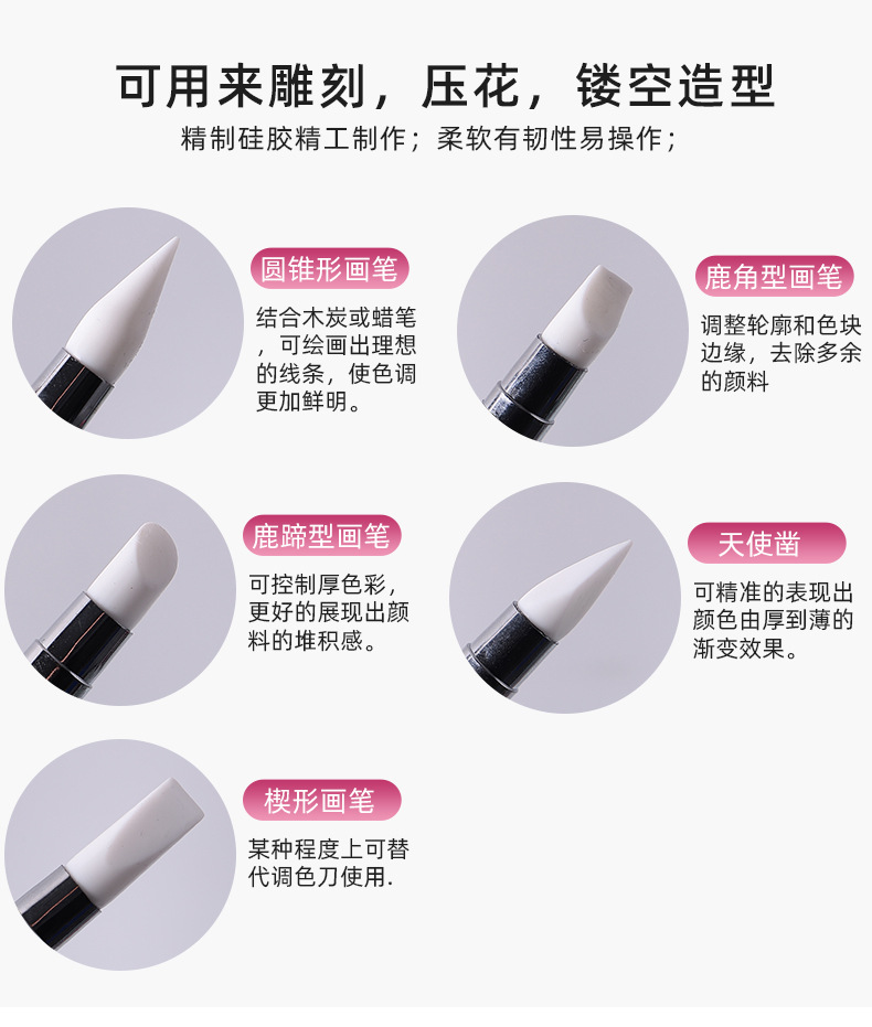 Wholesale Nail Art Silicone Pen Set Hollow Carving Multifunctional Embossing Smear Magic Mirror Powder Silicone Pen Nail Art Tools