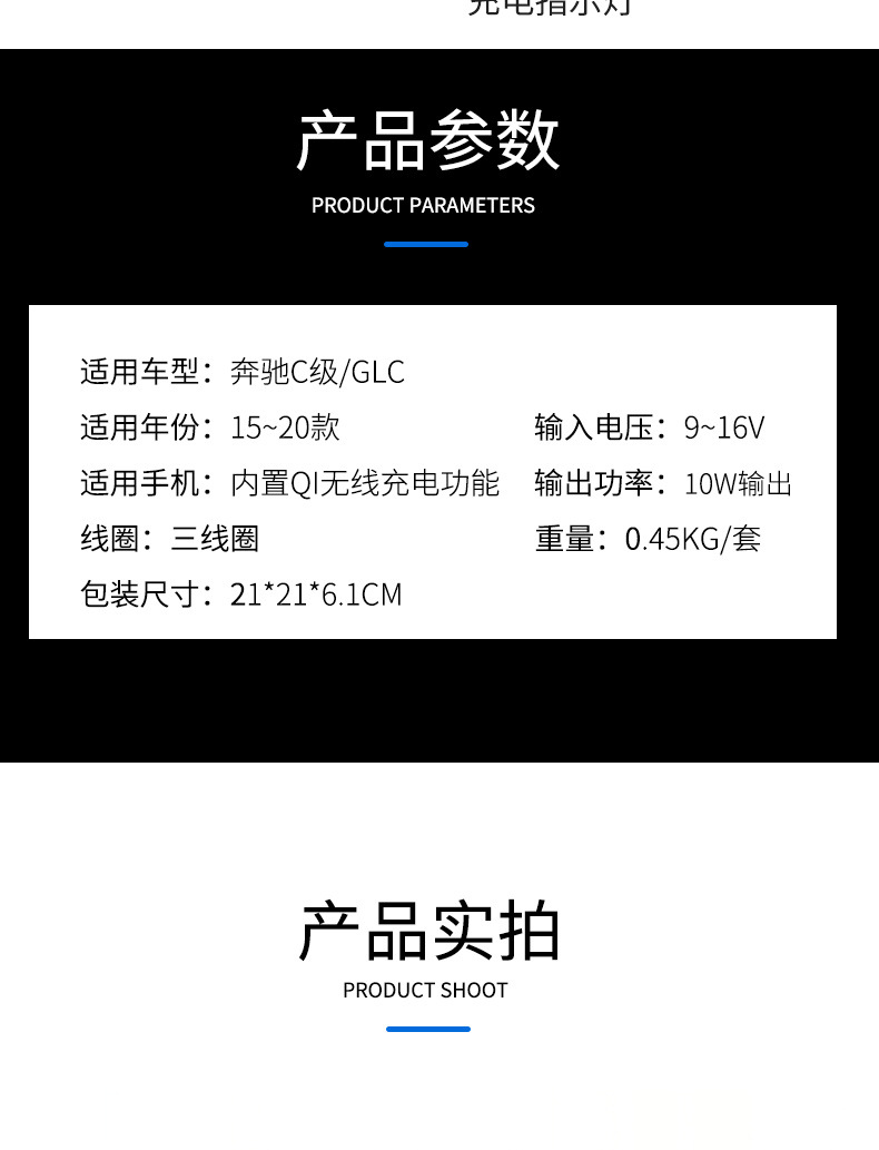 Suitable for Mercedes-Benz C- Class W205 GLC X253 C200 special car wireless charger USB car charger