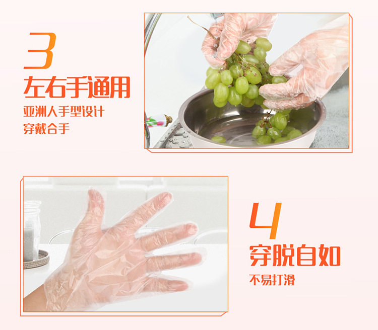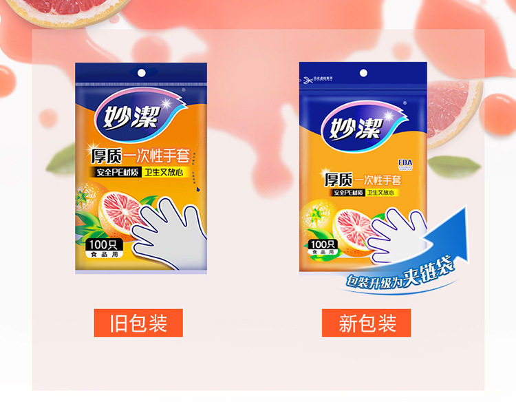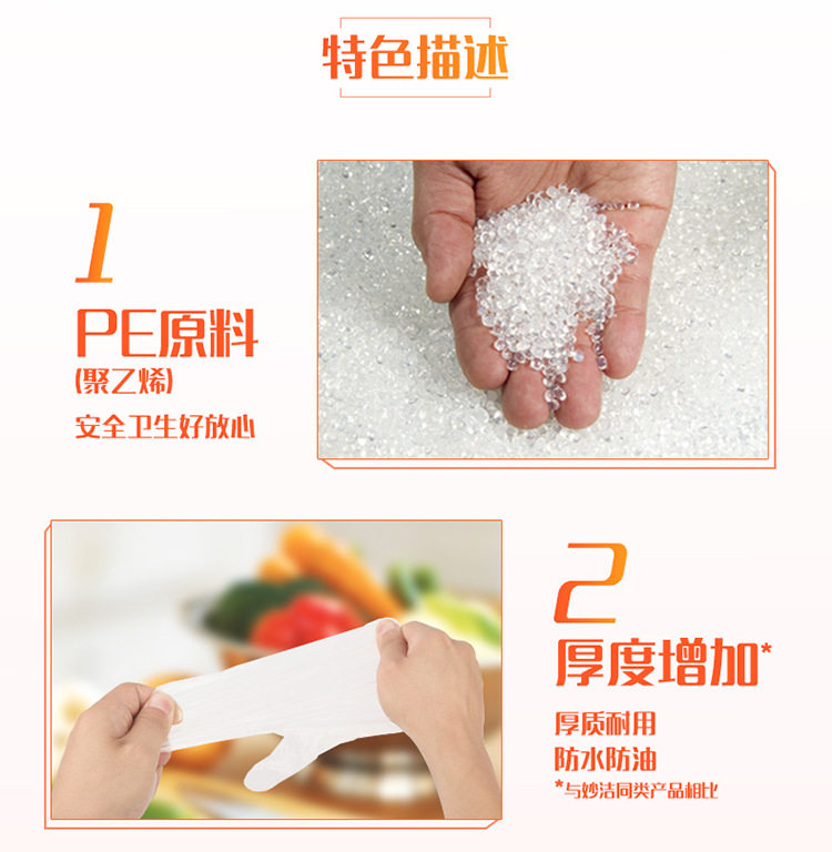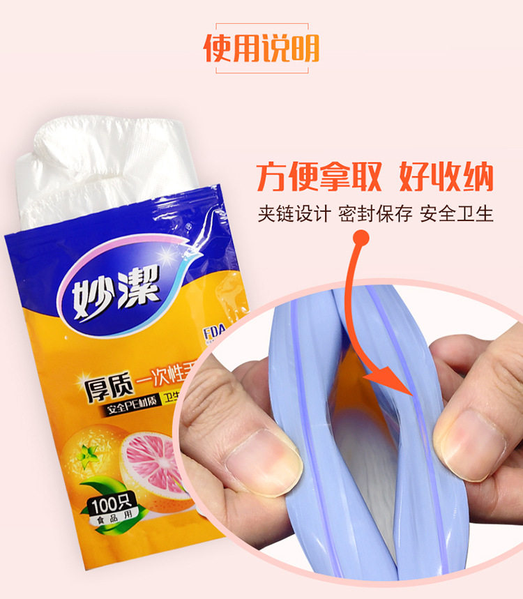 Miaojie disposable gloves PE plastic food grade special kitchen thickened transparent dining children household wholesale
