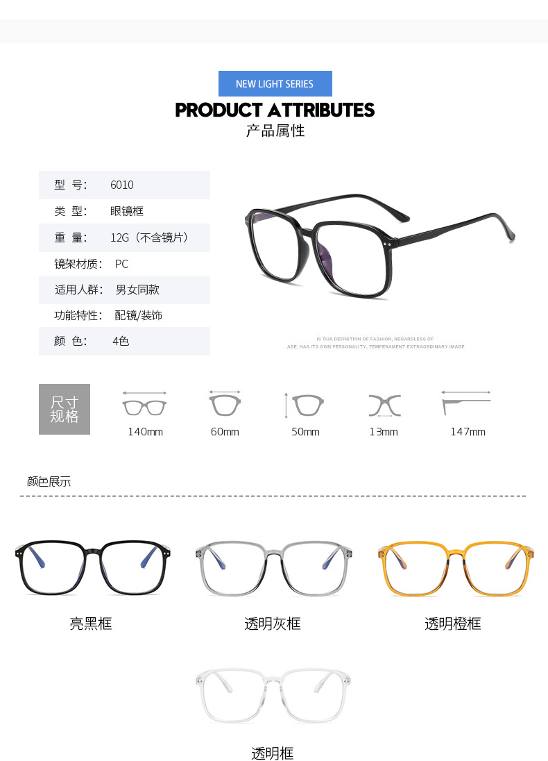 New 6010 frame finished myopia glasses frame flat glasses electric competition glasses for men and women with 50-600 degree glasses