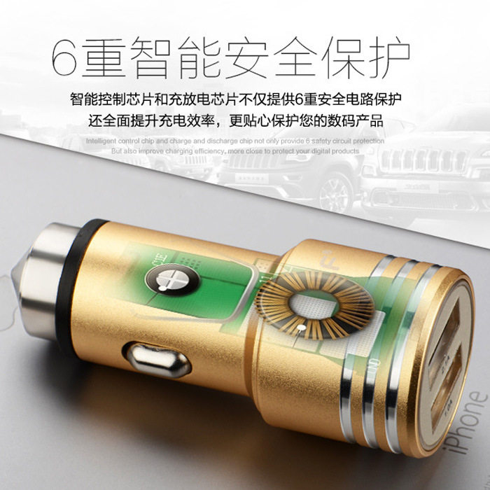 New Metal Car Charger Car Cigarette Lighter Car Dual USB Multi-Function Metal Car Charger Street Stall Supply