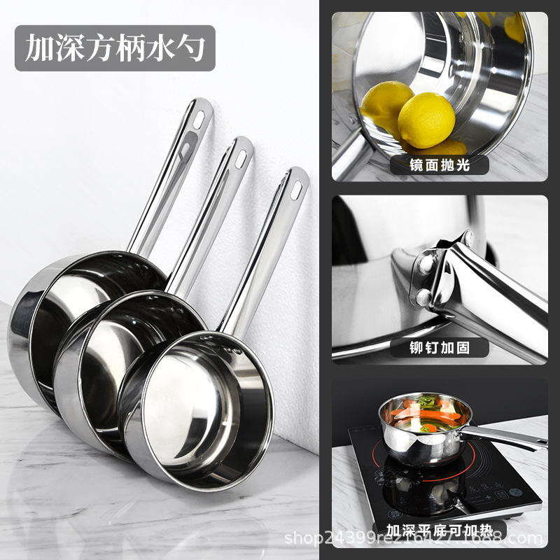 Household stainless steel flat bottom water spoon wholesale with handle water spoon Kitchen water spoon commercial deepening water spoon