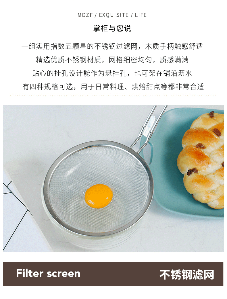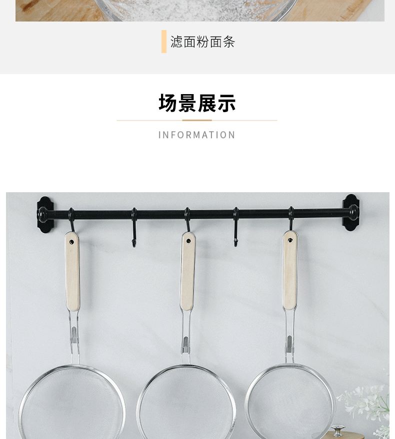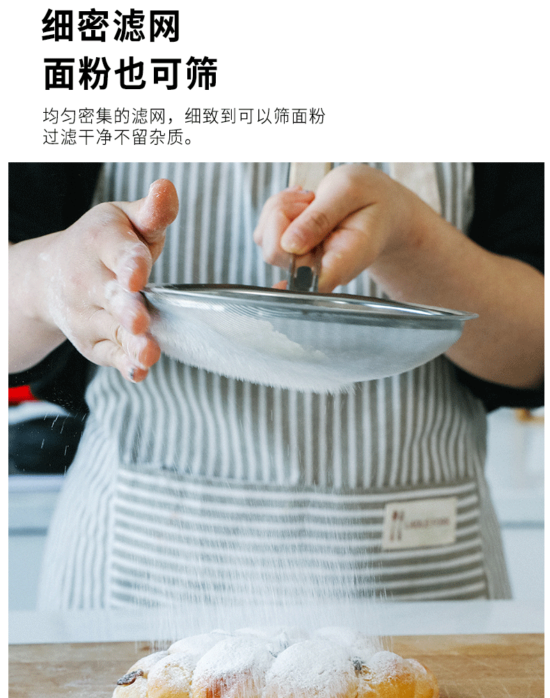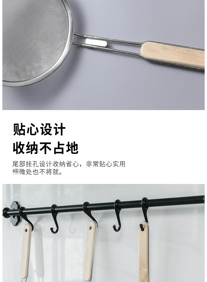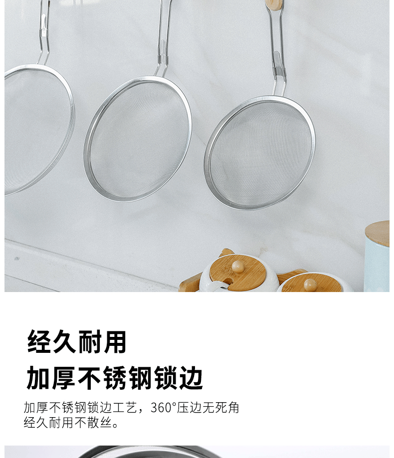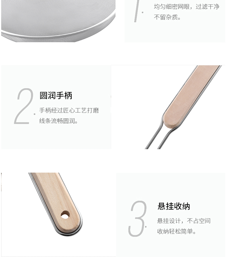 201 stainless steel colander wooden handle punching oil grid 40 mesh flour sieve baking tools Kitchen Dumpling fishing filter