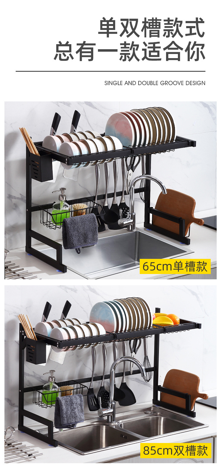 Kitchen Multi-Layer Storage Rack, Sink Dish Drying Rack, Kitchen Utensil Knife Holder, Multifunctional Storage, Thickened Square Tube Wholesale