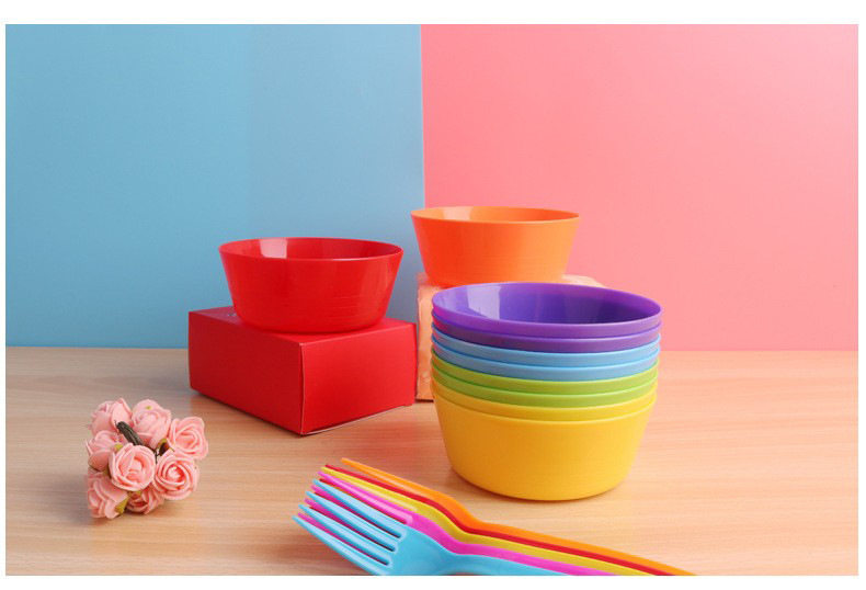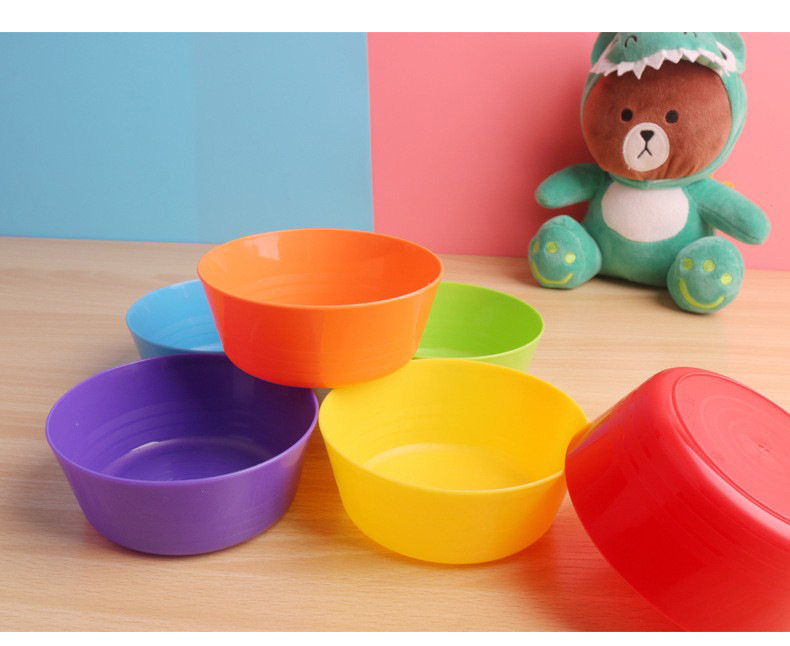 Cross-border rainbow color creative children's new plastic bowl tableware snacks snacks noodles rice bowl portable easy to clean