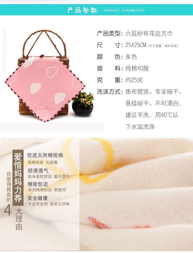 Cotton square six-layer small towel thickened small square 6-layer handkerchief kindergarten handkerchief gauze saliva towel wholesale