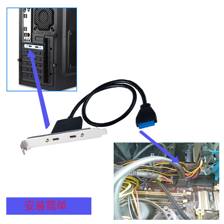 Computer chassis rear bezel data cable PCI extension 20-pin to TYPE C extension USB3.1 * 2