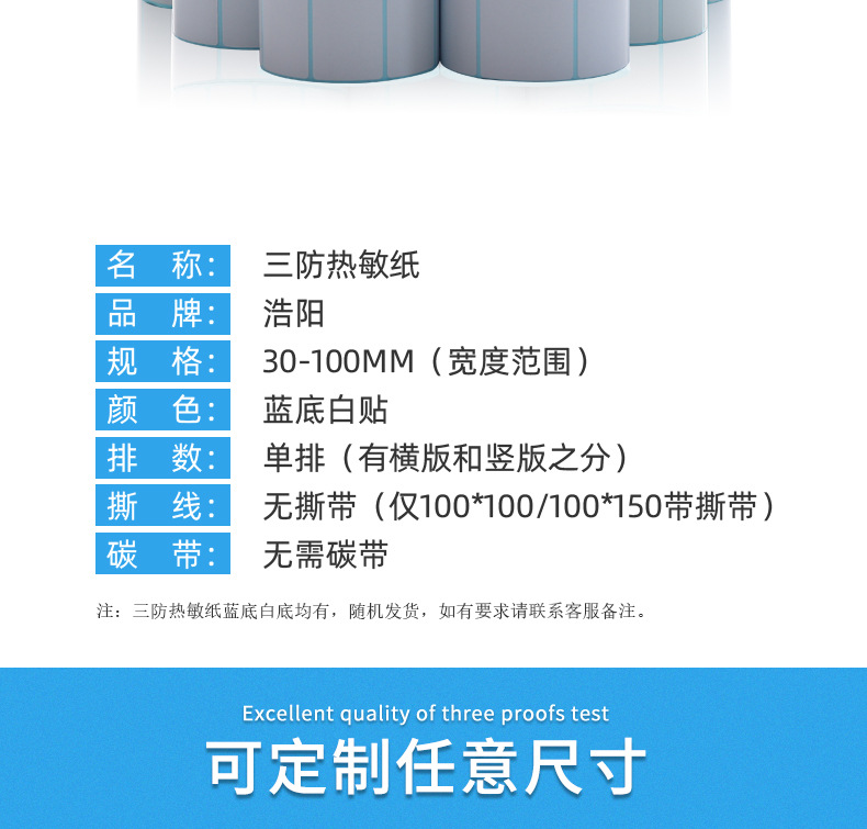 | Dimensions | High quality three-proof 100*100*500 horizontal version single row with tear line,High quality three-proof 100*150*500 vertical single row with tear line,30*20*1200 horizontal single row,30*40*700 vertical single row,40*20*1200 horizontal single row,40*30*800 horizontal single row,40*50*500 vertical single row,40*60*500 vertical single row,40*70*400 vertical single row,40*80*300 vertical single row,50*20*1200 horizontal single row,50*30*800 horizontal single row,50*40*800 horizontal single row,50*70*400 vertical single row,50*80*300 vertical single row,60*30*800 horizontal single row,60*40*700 horizontal single row,60*50*500 horizontal single row,70*30*800 horizontal single row,70*40*700 horizontal single row,70*50*500 horizontal single row,80*30*800 horizontal single row,80*40*1000 horizontal single row,80*50*1000 horizontal single row,80*60*1000 horizontal single row,90*50*1000 horizontal single row,90*60*1000 horizontal single row,90*70*500 horizontal single row,100*50*1000 horizontal single row,100*60*1000 horizontal single row,100*70*1000 horizontal single row,100*75*600 horizontal single row,100*80*500 horizontal single row,40*30*2500 horizontal double row,50*20*5000 horizontal double row,30*20*5000 horizontal version of the three rows,80*80*600 single row,75*100*250 vertical single row,80*100*500 vertical single row,70*20*2000 horizontal single row |