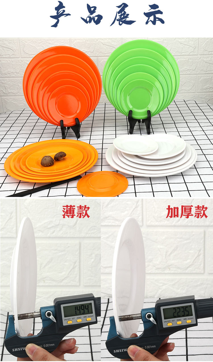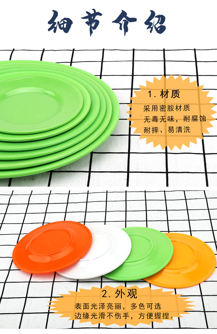 Plastic Plate Round Snack Plate Disc Creative Melamine Tableware Dinner Plate Commercial Dish Dish Dish Dish Bone Dish Household