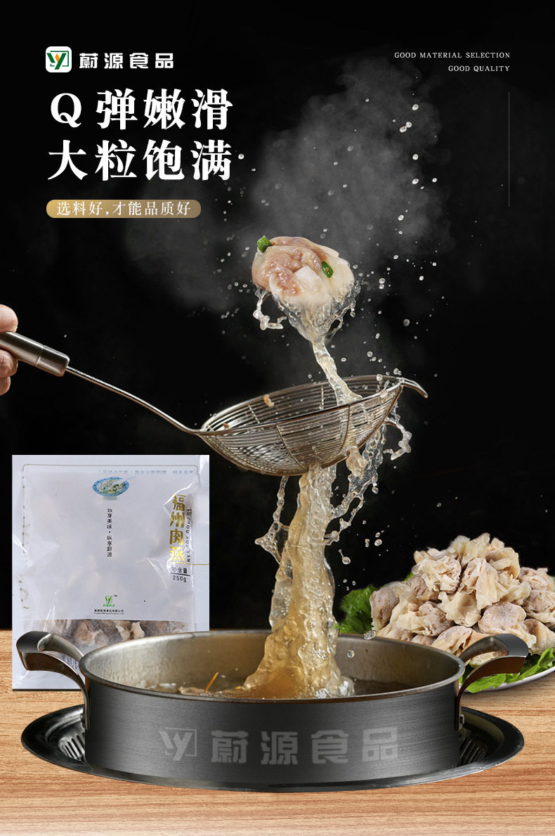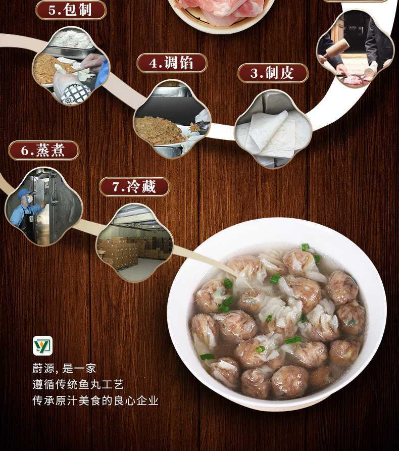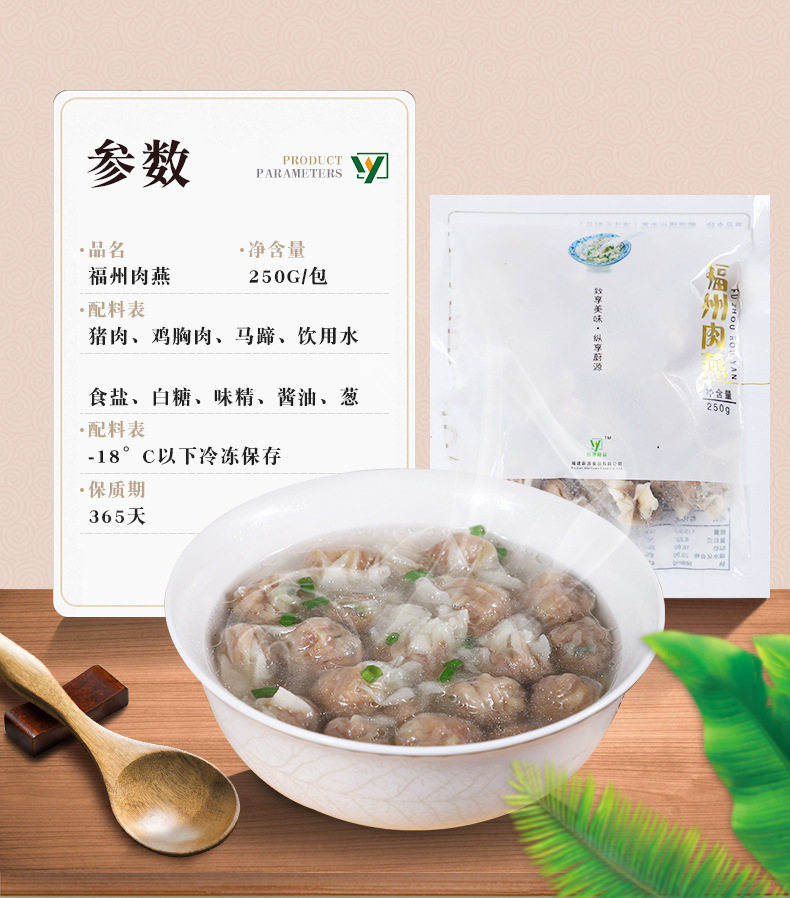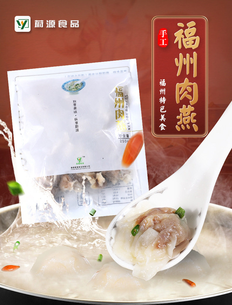 Fujian specialty Fuzhou Yuyuan meat swallow 250g flat meat wonton wonton wonton dumpling quick-frozen small chaos fast food wholesale