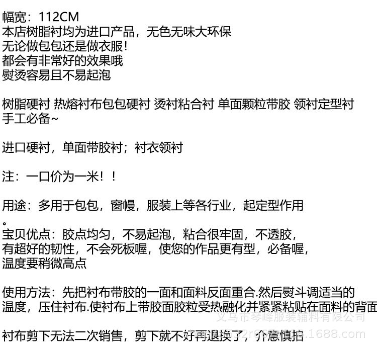 Adhesive Stereotyped Spinning Resin Interlining Hard Lining Collar Lining Window Curtain Clothing Hot Lining Adhesive Lining Hot Melt White Lining Fabric