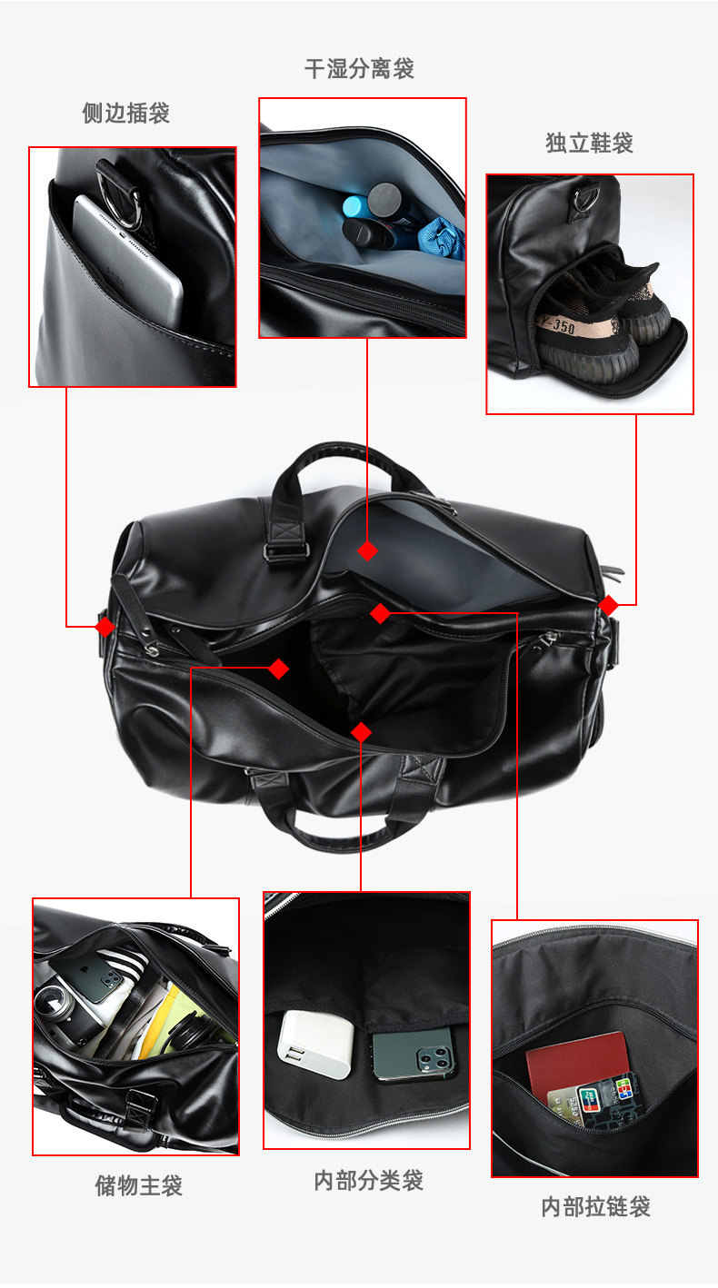 Men's Travel Bag Handbag Waterproof Sports Bag Cylinder Training Gym Bag Large Capacity Luggage Shoulder Bag in stock