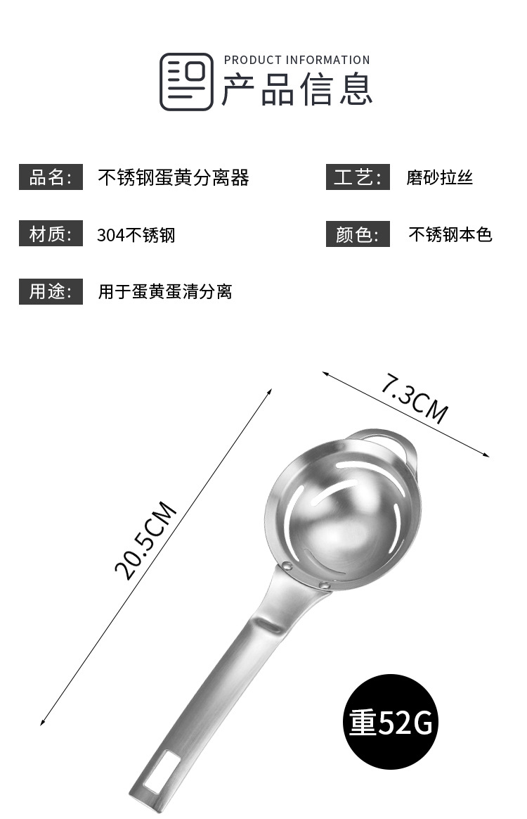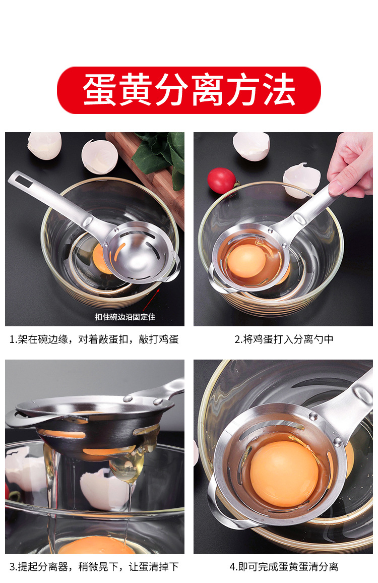 Egg separator 304 stainless steel egg white separator egg separator egg liquid egg separator egg filter beach supply