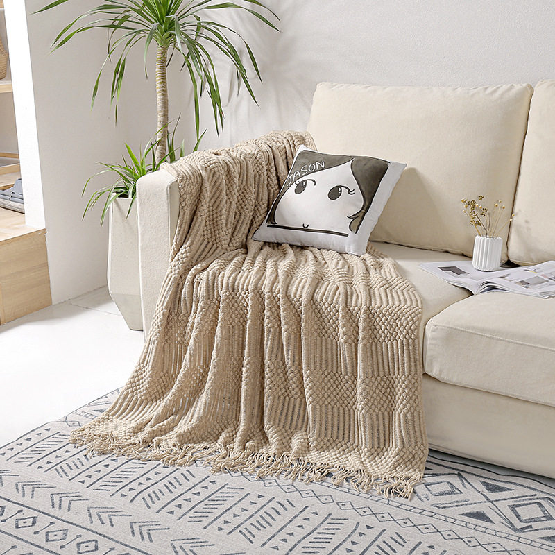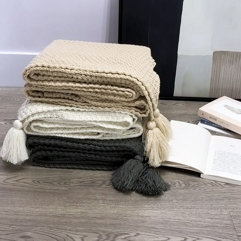 New Nordic Style Tassel Knitted Blanket Office Air Conditioning Lunch Break Blanket Wool Cover Blanket Sofa Casual Blanket Blanket