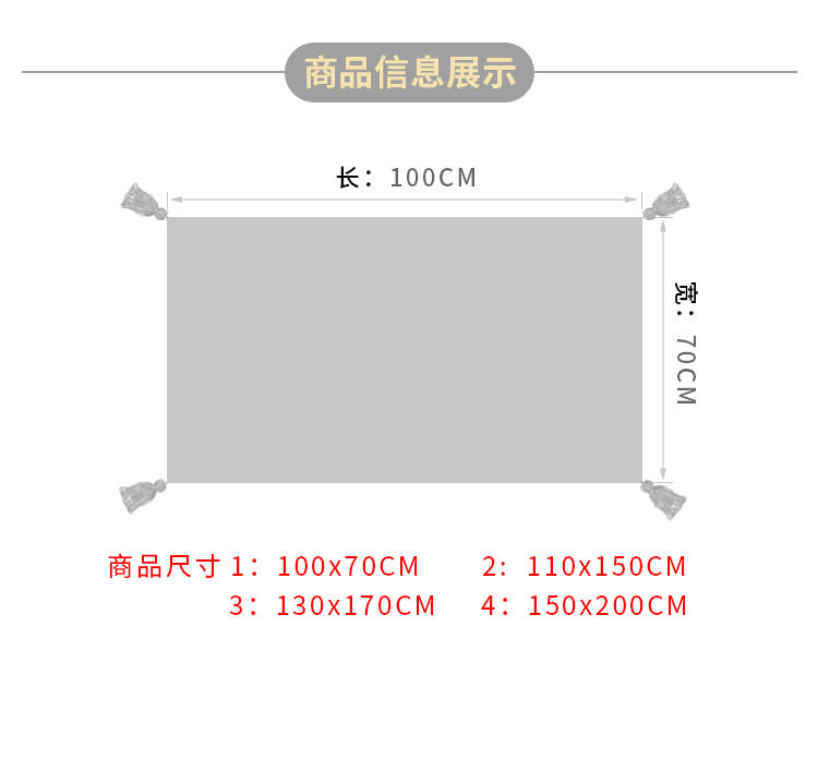 | Dimensions | 70*100CM,110*150CM,130*170CM,150*200,100*240CM bed end blanket sofa towel,150*280CM sofa towel, multi-person blanket,45*45 pillow case (excluding core,45*45 pillow (including core,127*152 20CM tassel,127*200 20CM tassel,130*240 20CM tassel |
