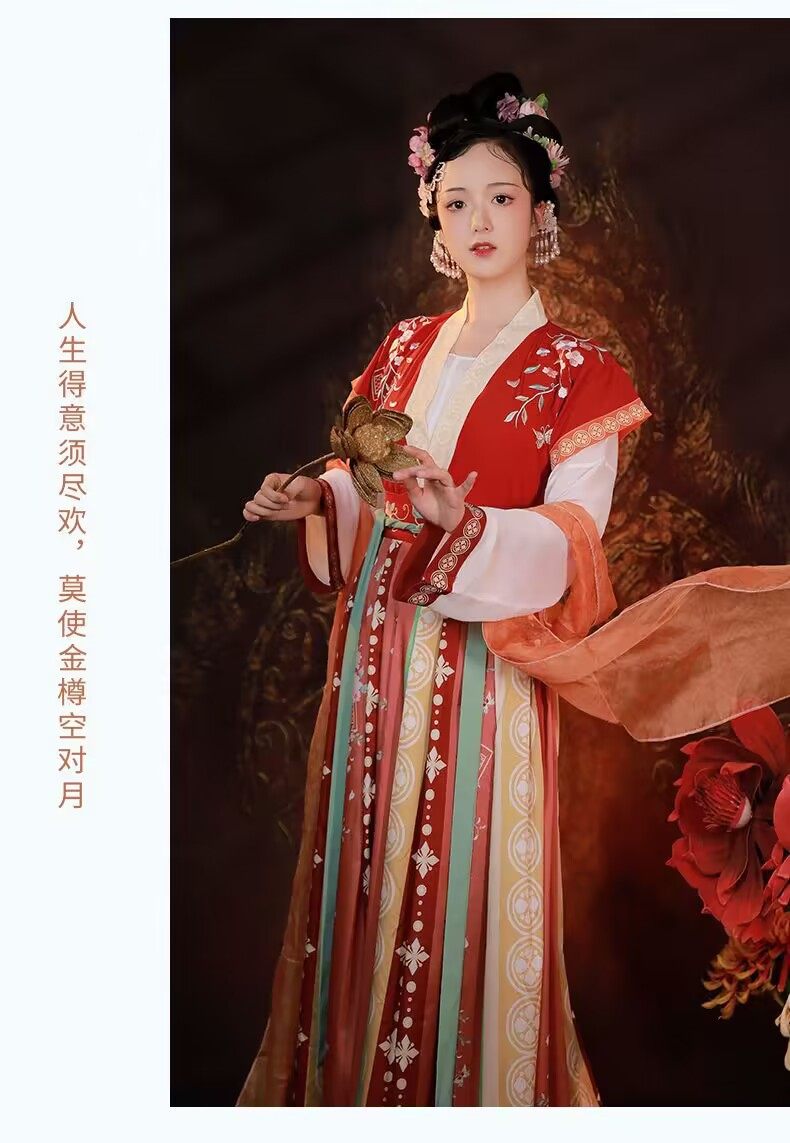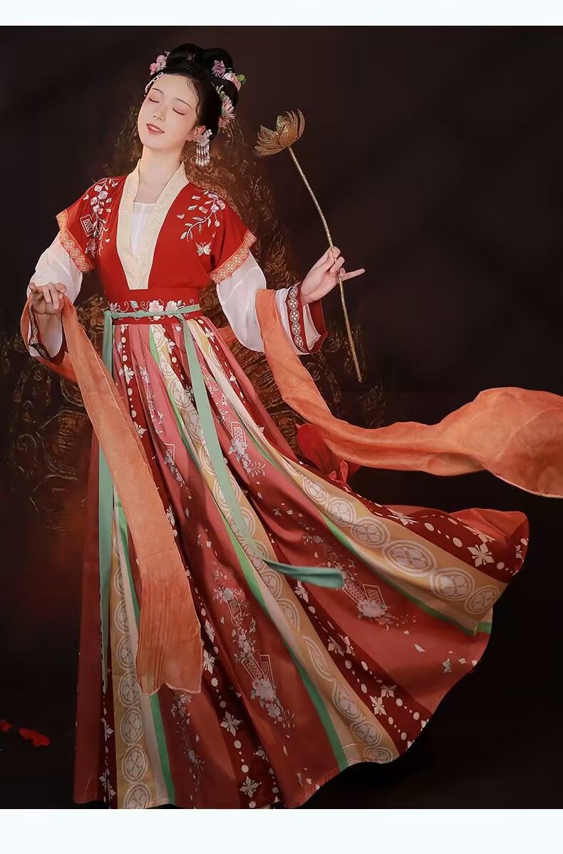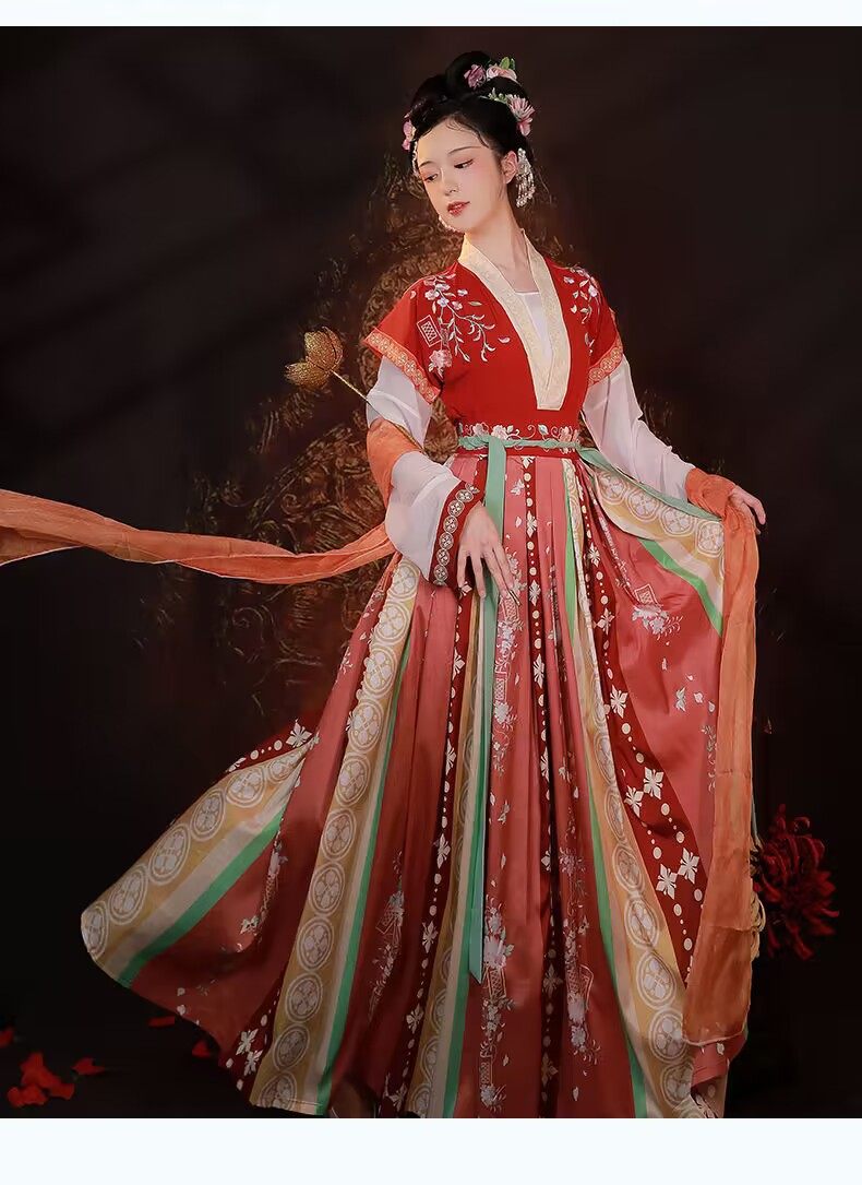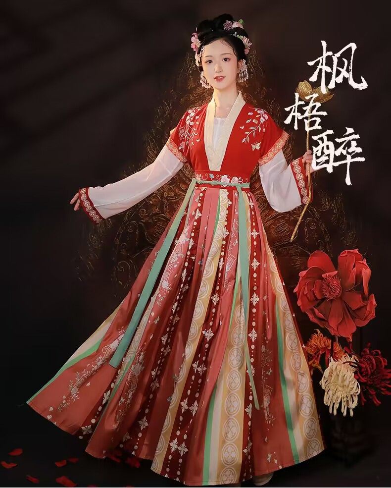 Hanfu Women's New Chinese Style Super Fairy Elegant Maple Wu Drunk Tang Style Qi Waist Women's Pleated Skirt Ancient Clothes Spring and Autumn Skirt