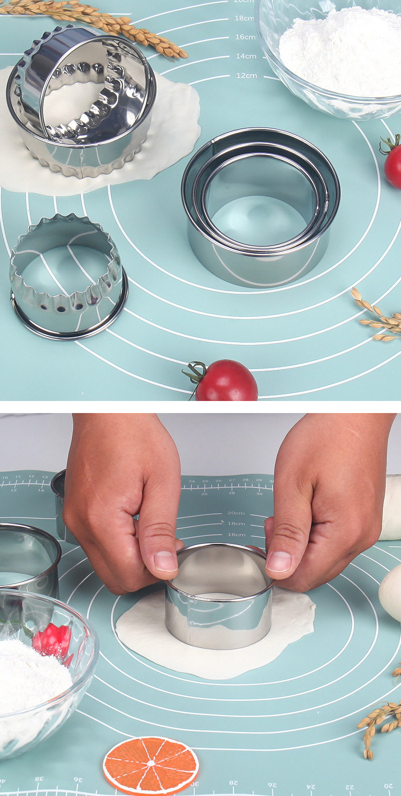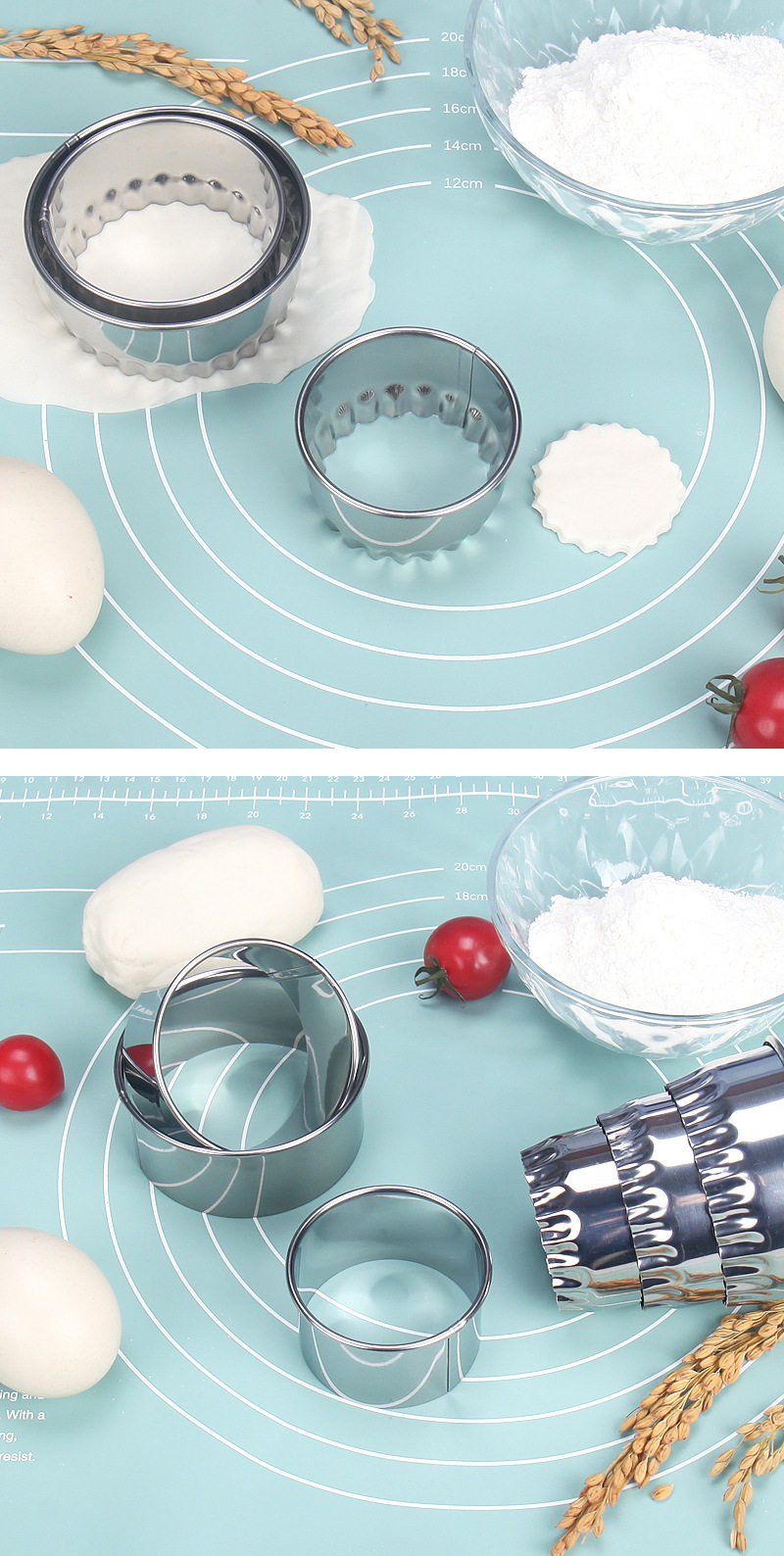 Stainless Steel Dumpling Skin Mold Three-piece Dumpling Skin Cutting Tool Round Flower Biscuit Mold Dumpling Skin Press Tool