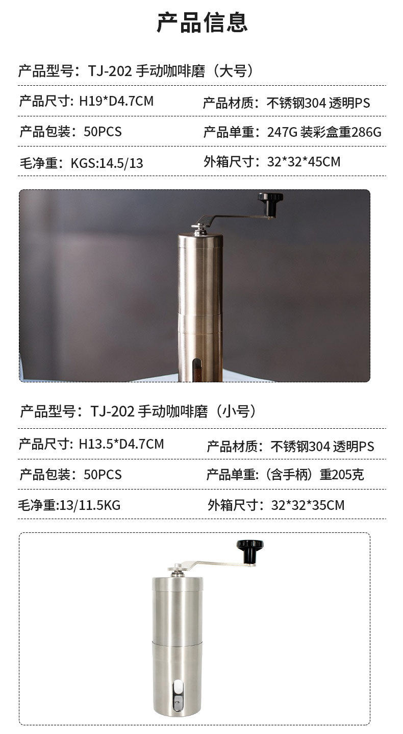 Foreign trade coffee grinder OEM custom portable 304 stainless steel coffee bean grinder hand coffee machine