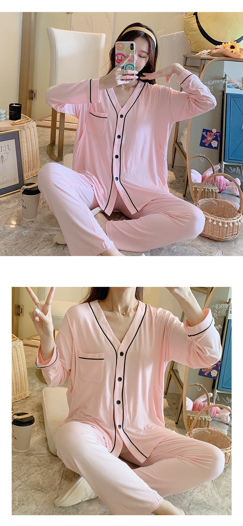 Spot June 222 clothing pure 69 months pregnant women modal pajamas summer thin postpartum nursing pregnant lactation