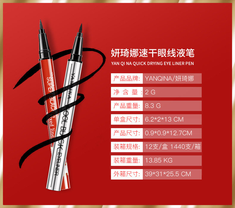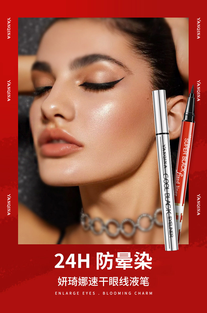 Yanqina Silver Tube Eyeliner Quick-Drying Long-Lasting Cool Black Big Eye Waterproof Liquid Eyeliner Pen Southeast Asia