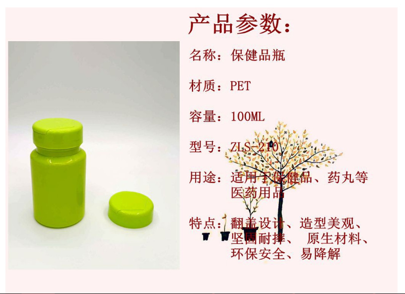 Source manufacturers spot plastic bottle flip PET100cc fruit green plastic bottle candy milk bottle mouth candy bottle