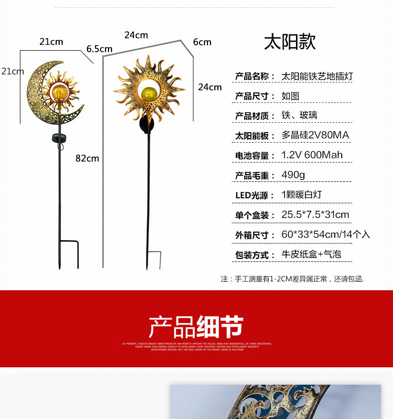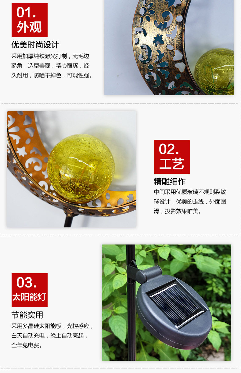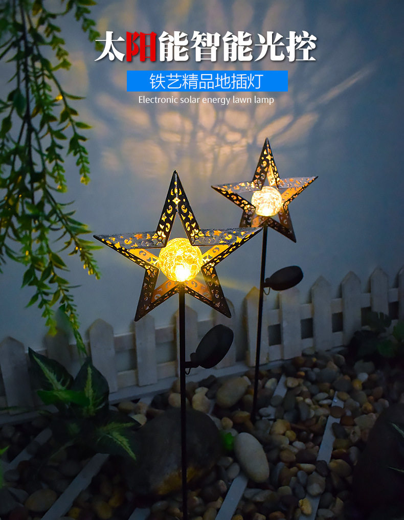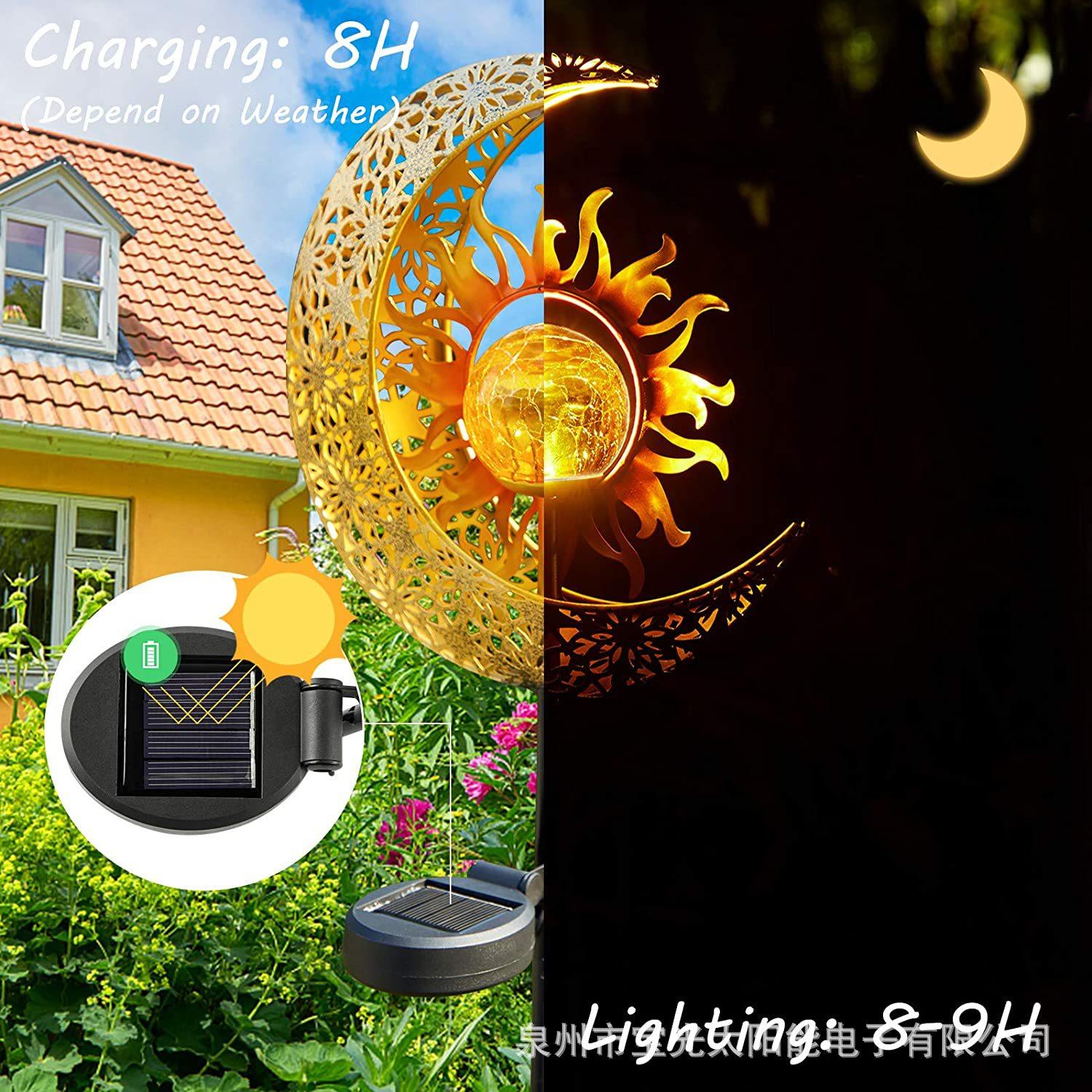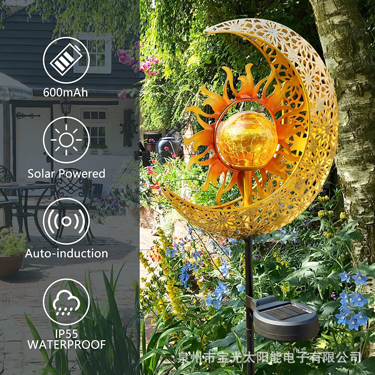 Outdoor garden solar lamp moon sun landscape courtyard hollow lamp antique iron plug light atmosphere lamp