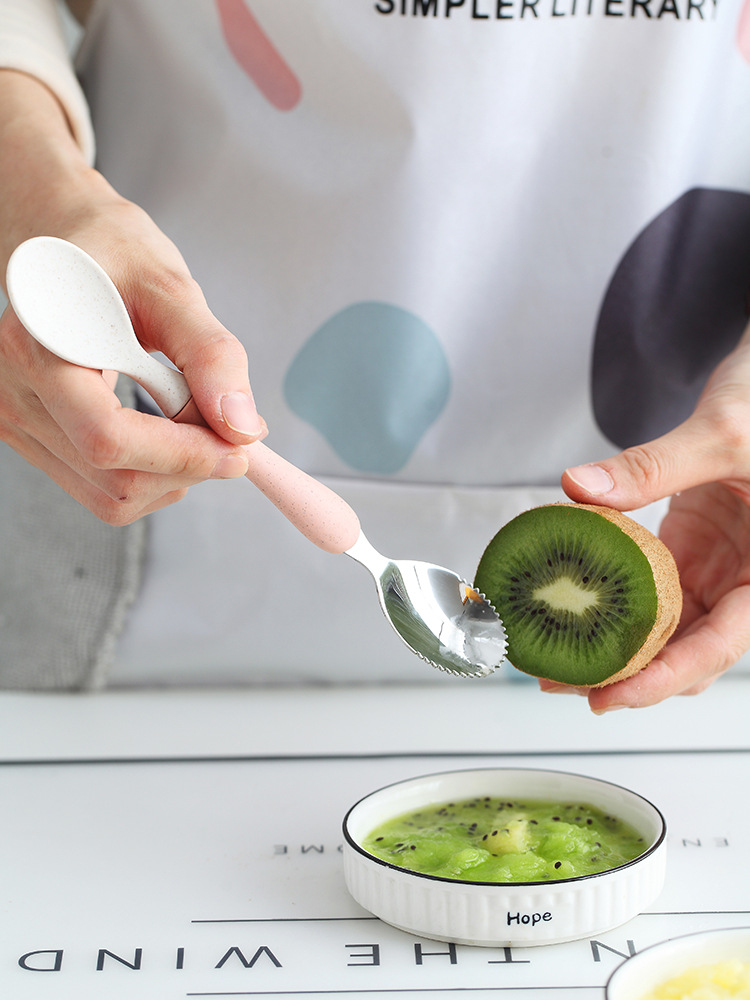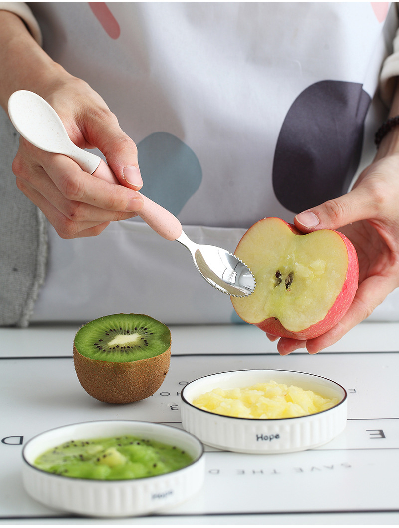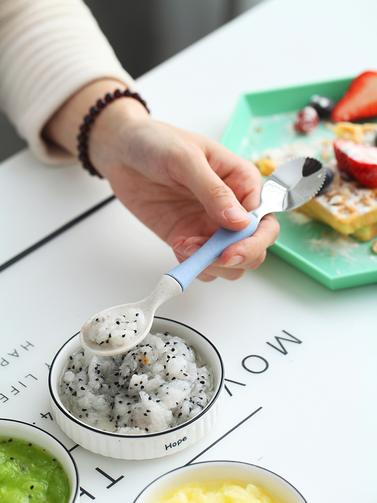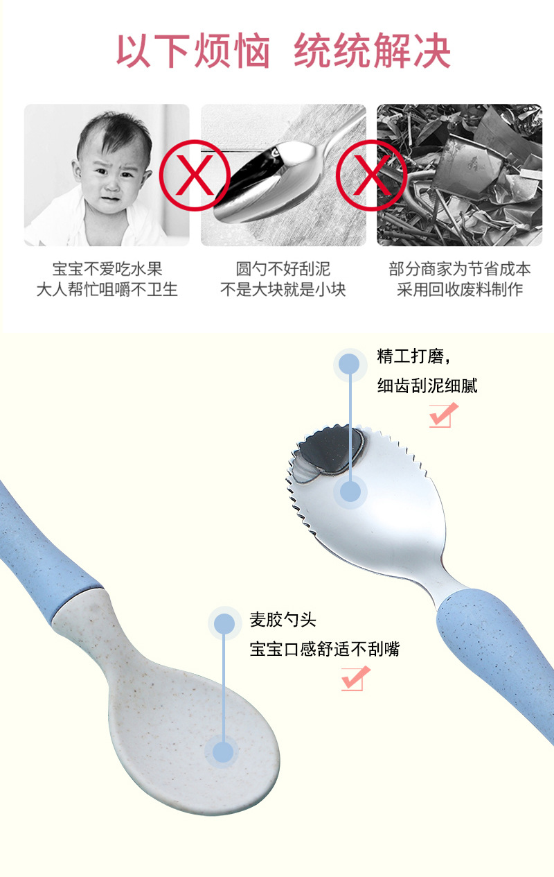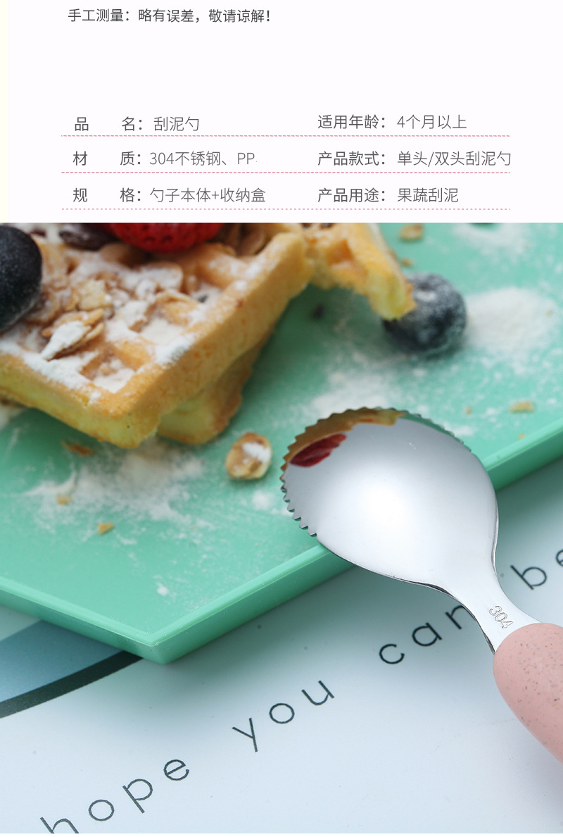 Korean Japanese-style baby 304 stainless steel multi-functional double-headed dual-use feeding apple fruit scraping spoon