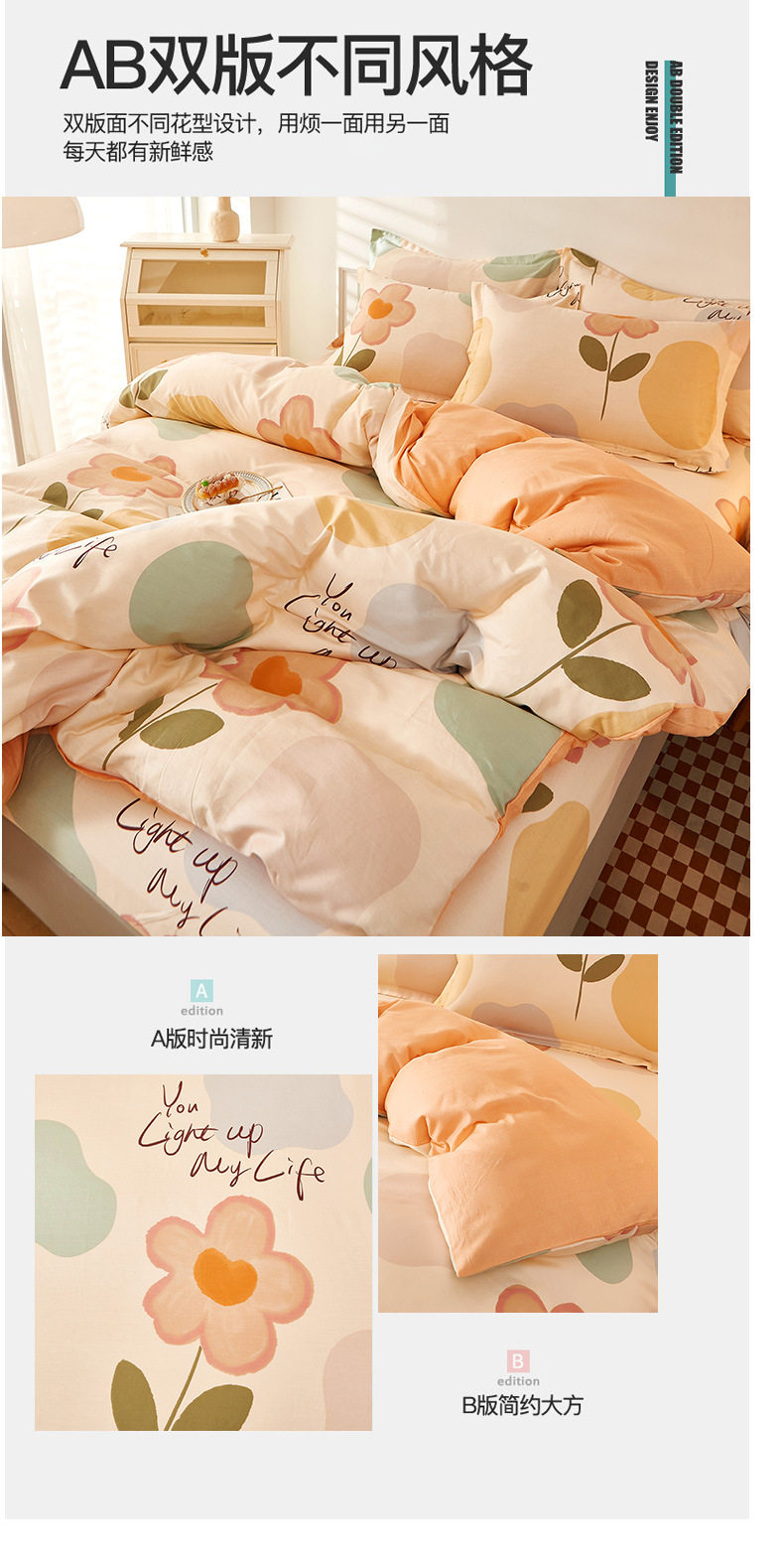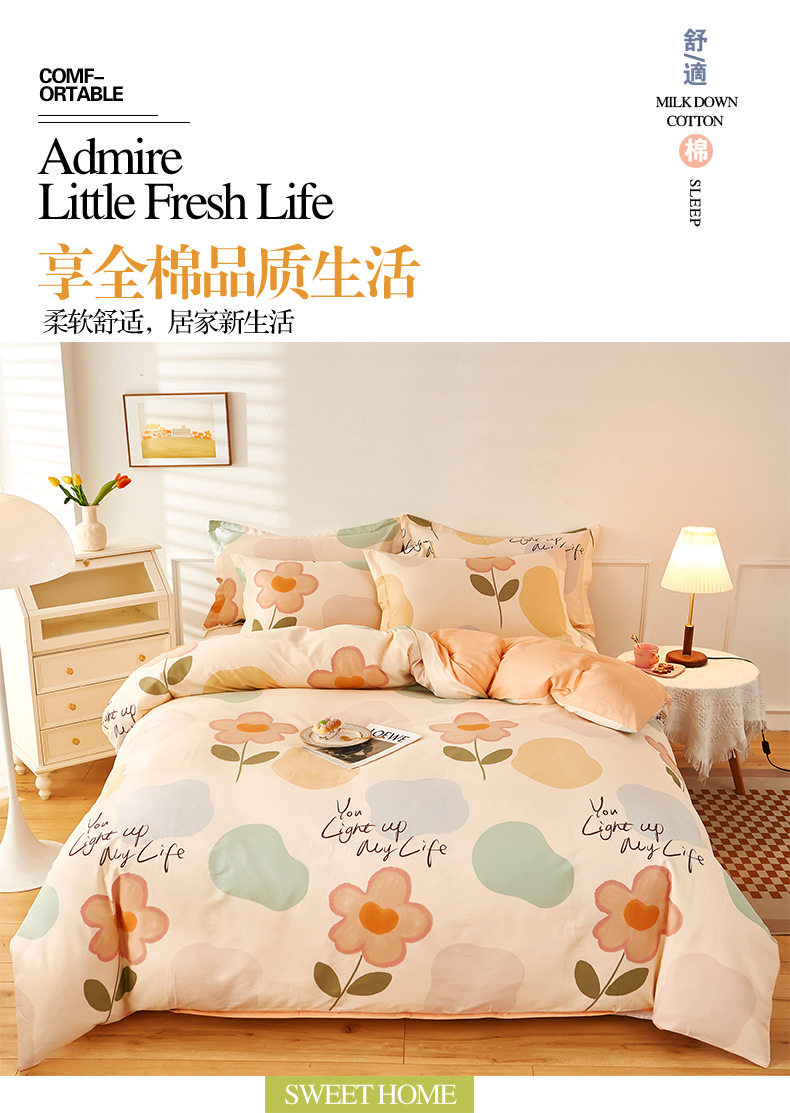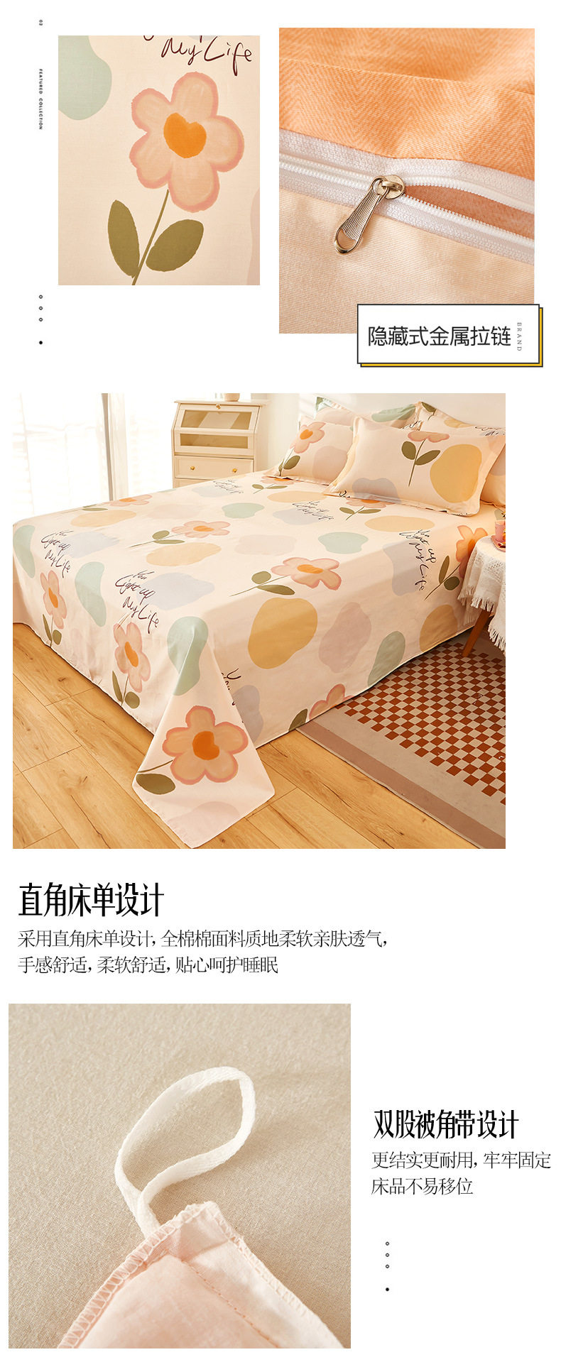 100% Cotton Four-Piece Set for All Seasons, Small Fresh Student Dormitory Quilt Cover, Bed Bed Sheets, Quilt Three-Piece Set, Thin Style
