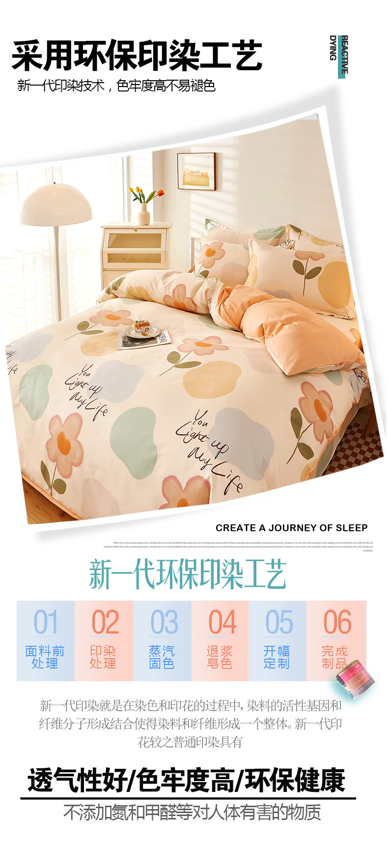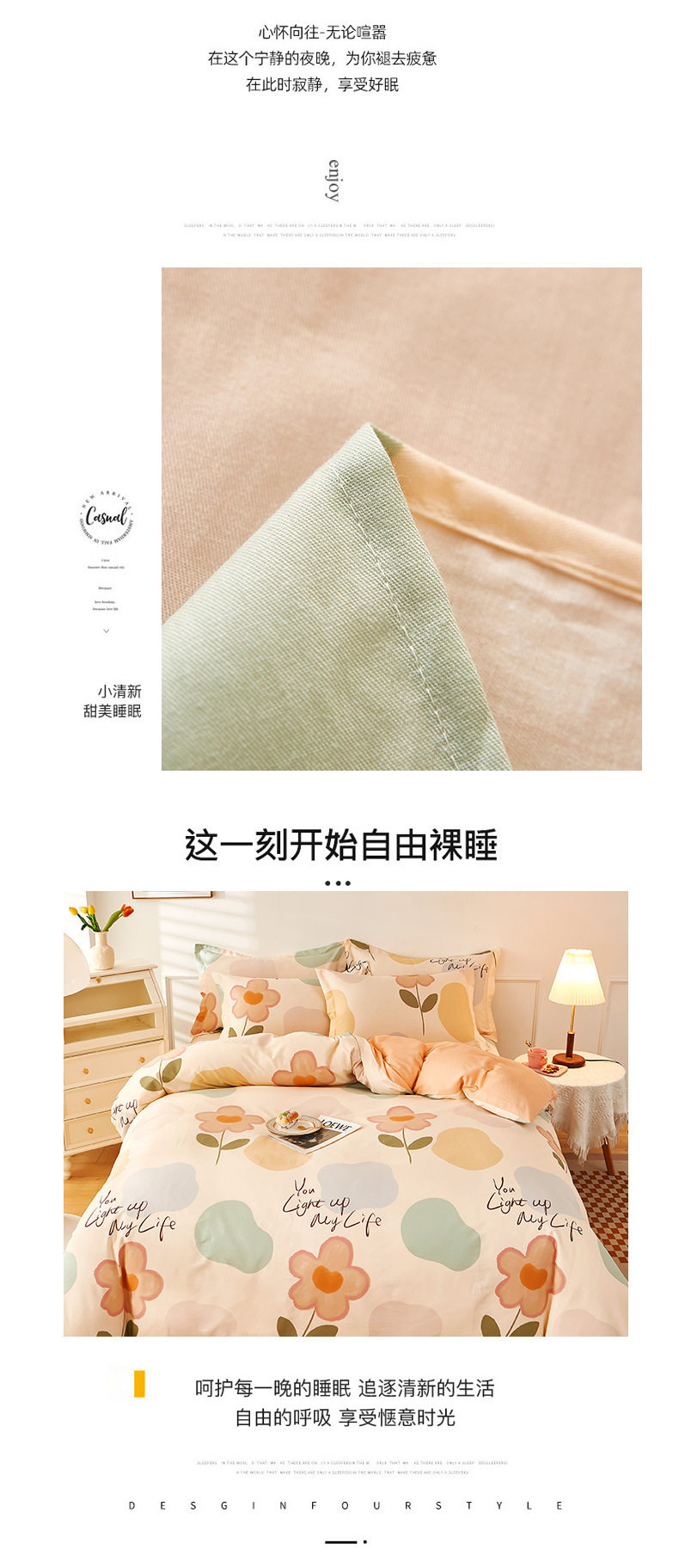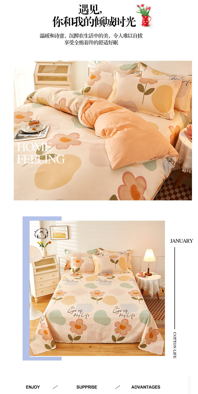 100% Cotton Four-Piece Set for All Seasons, Small Fresh Student Dormitory Quilt Cover, Bed Bed Sheets, Quilt Three-Piece Set, Thin Style
