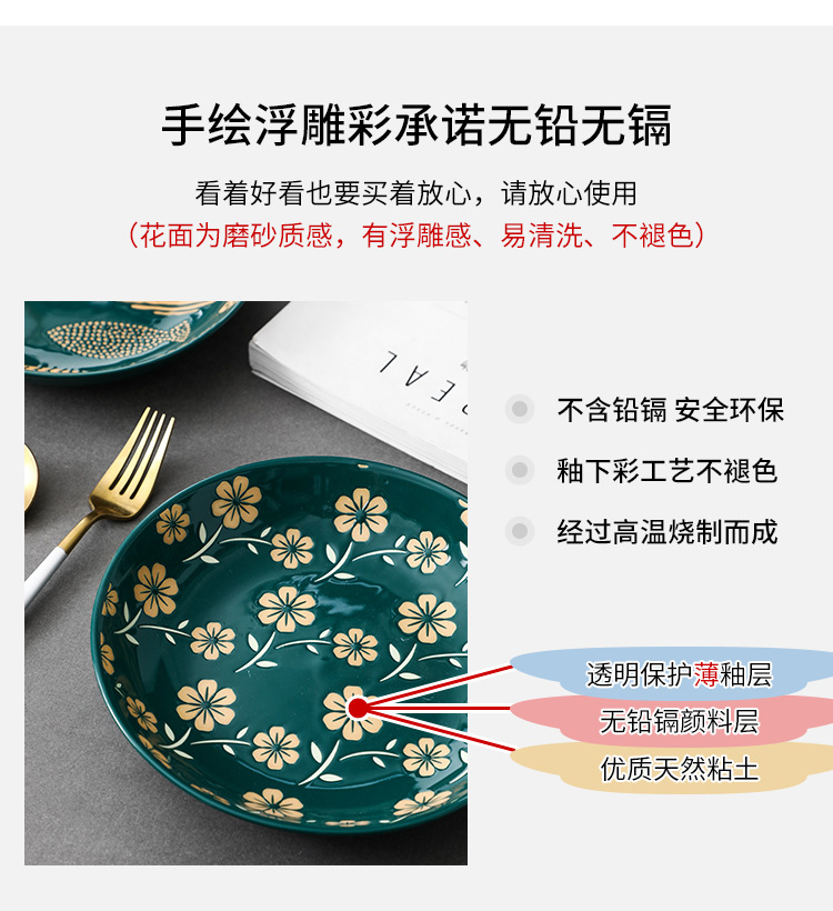 7-inch rice plate Nordic dinner plate Internet-famous plate dark green deep plate household ceramic rice plate dish plate tableware