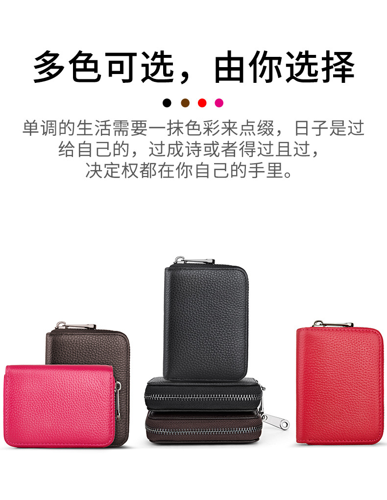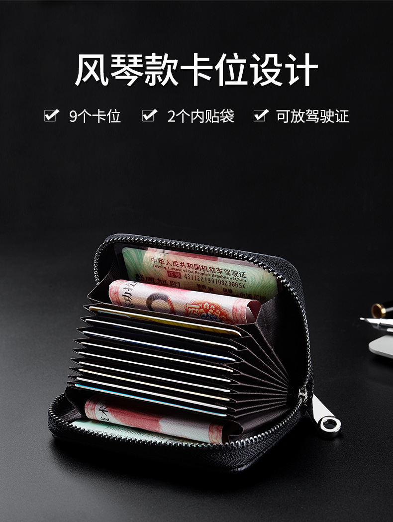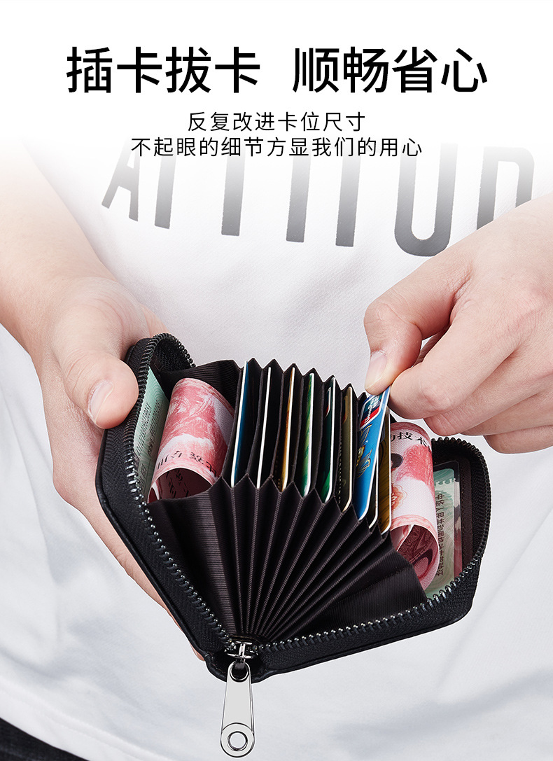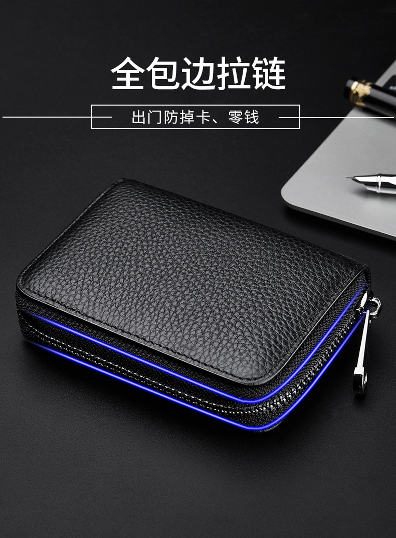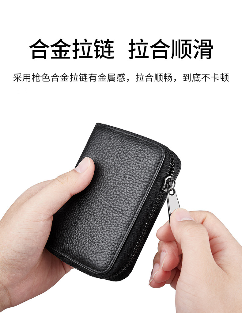 Genuine Leather Card Holder Men's Anti-degaussing Anti-theft Card Holder Women's Multi-card Holder Zipper Credit Card Holder
