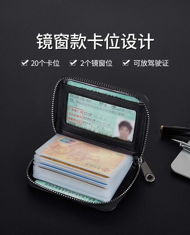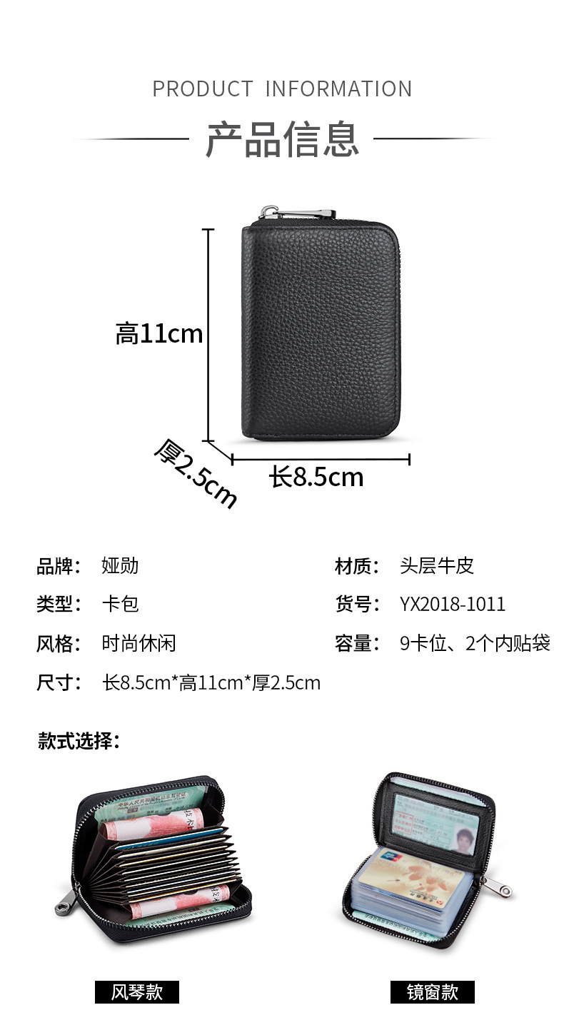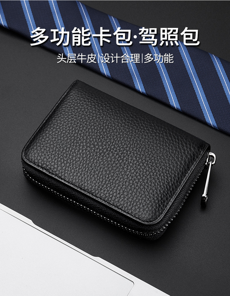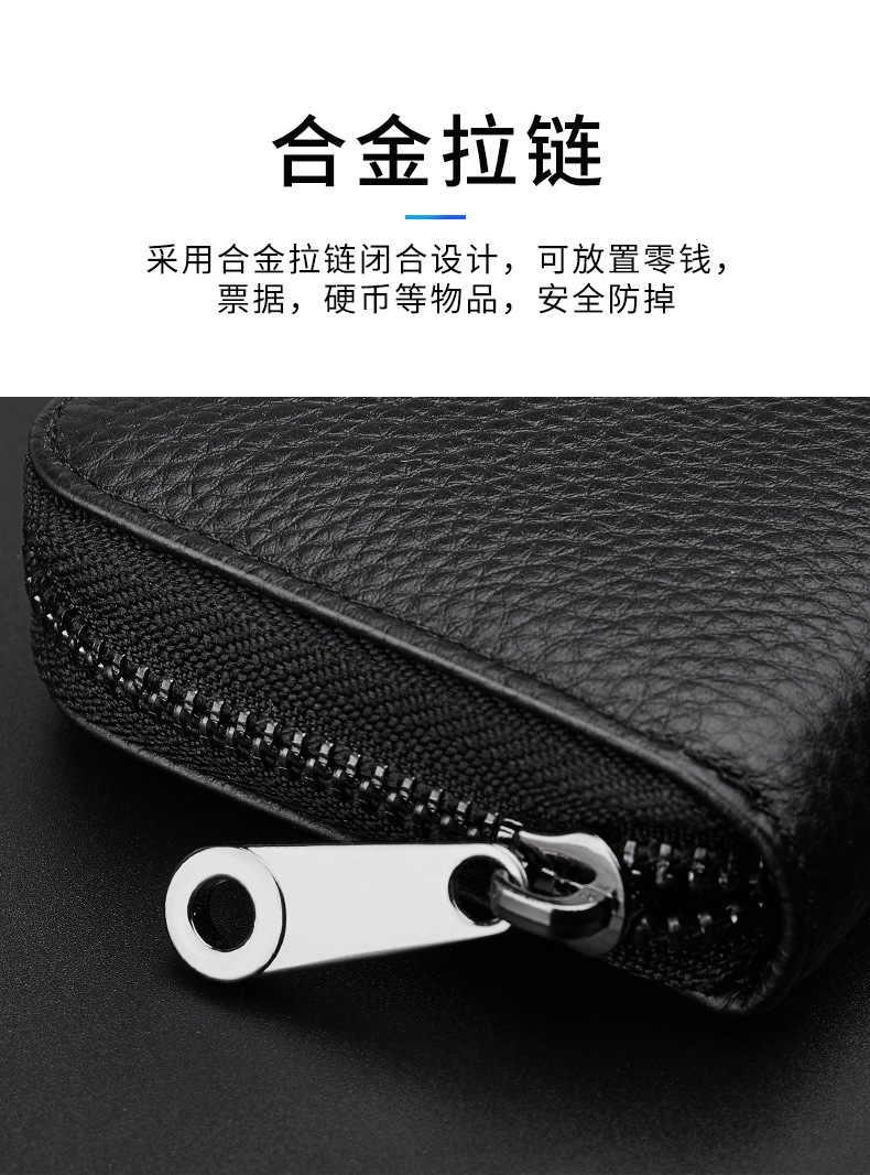 Genuine Leather Card Holder Men's Anti-degaussing Anti-theft Card Holder Women's Multi-card Holder Zipper Credit Card Holder