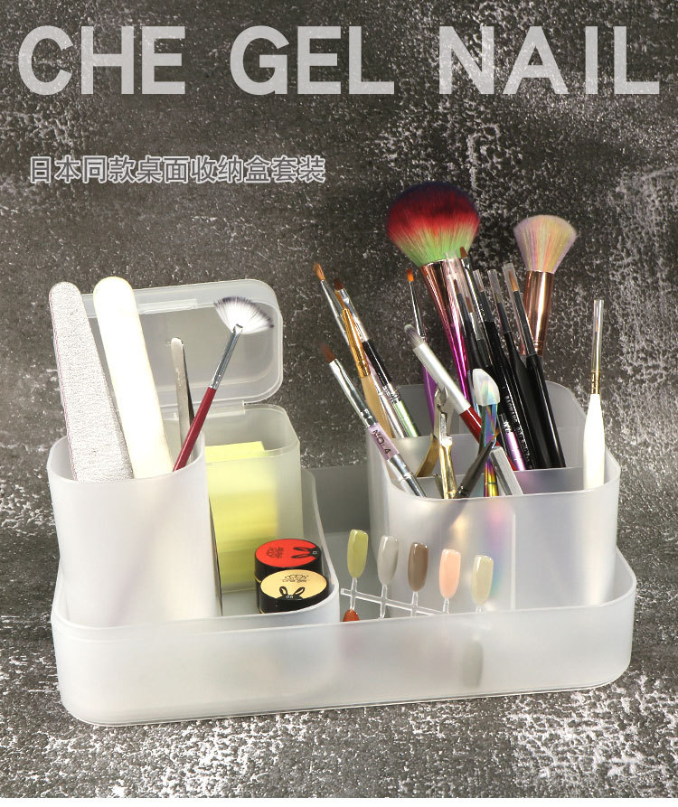 2022 New Japanese Manicure Tools Cotton Box Eyelash Storage Box Dust Brush Desktop Organizer Pen Holder Set