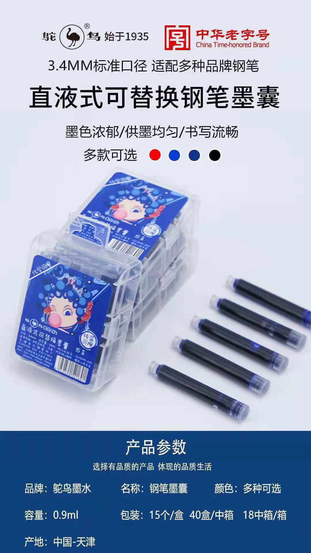 Ostrich pen ink bag 15 boxed 3.4 caliber unified water pen ink refill teacher recommend affordable