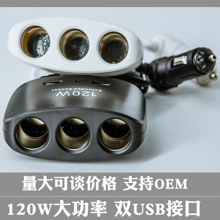 Car cigarette lighter 12-24V plug-in mobile phone charger towing three USB car charging high-power one-three truck