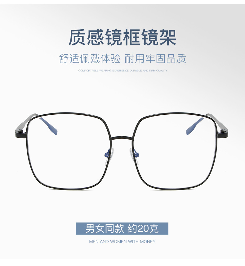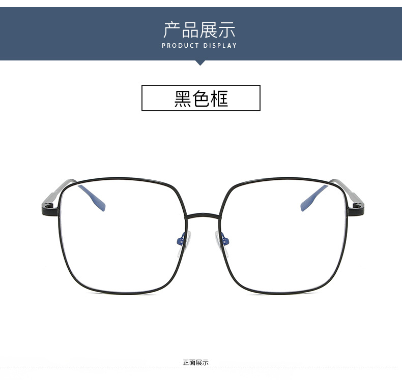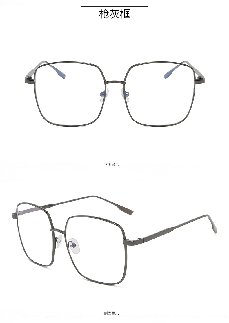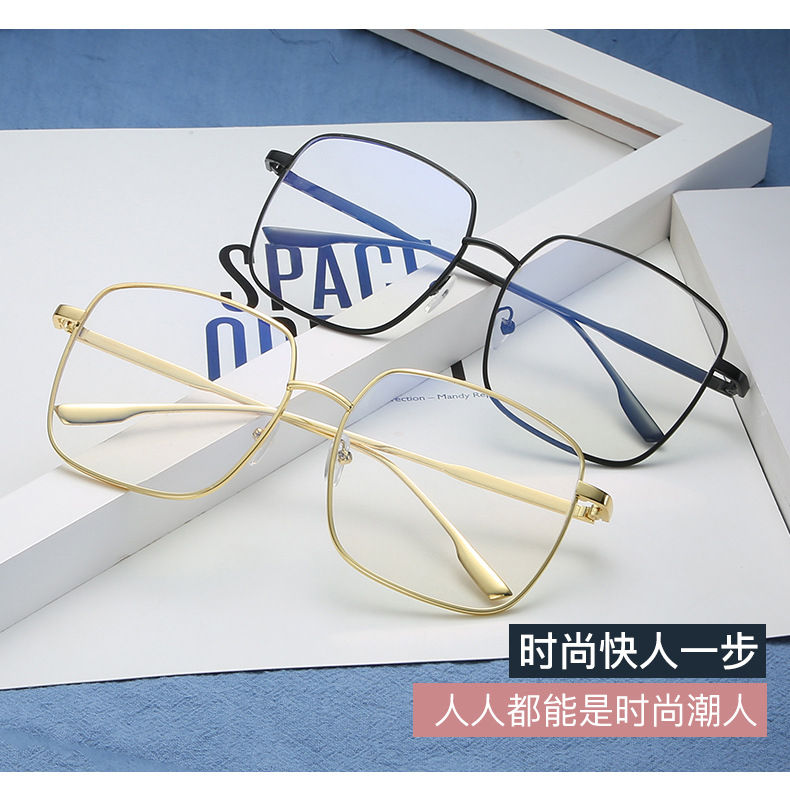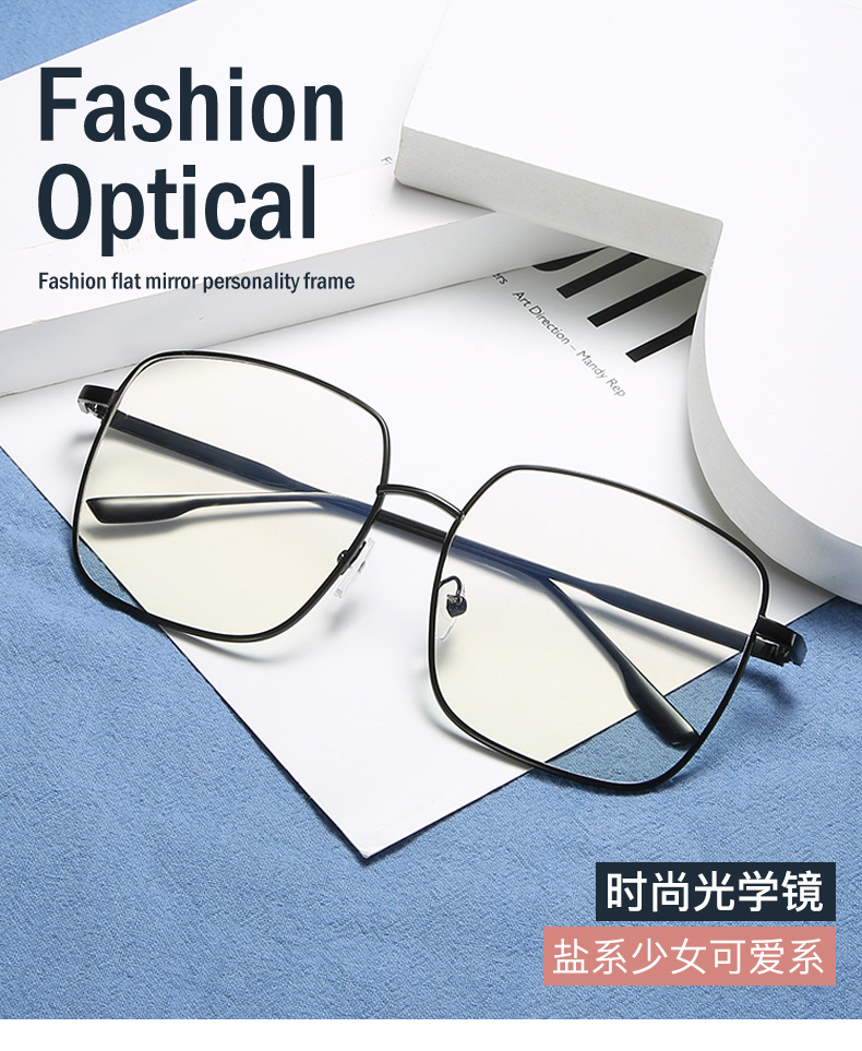 2022 New Blue Film Flat Mirror Large Frame Metal Frame Trendy Student Glasses Men's and Women's Stall Hot Selling Explosions