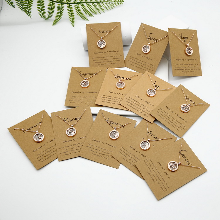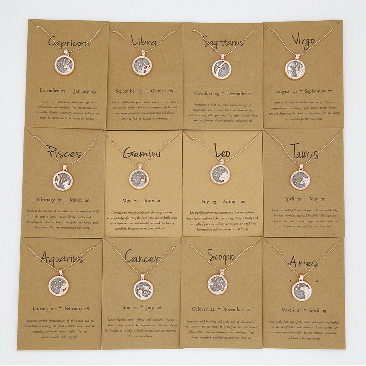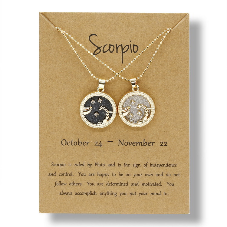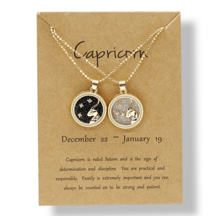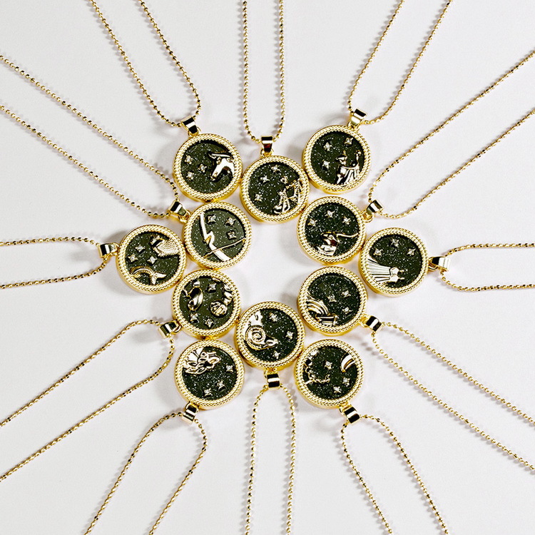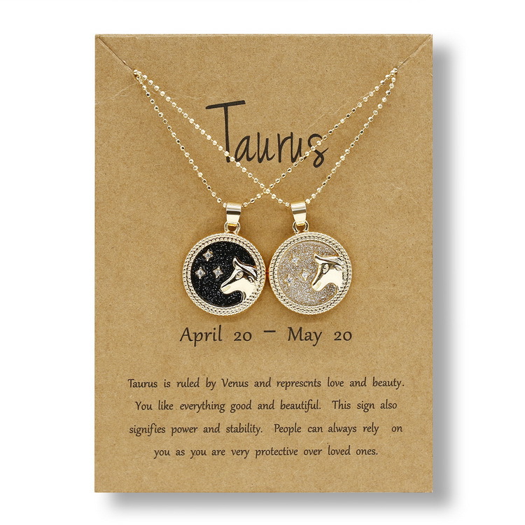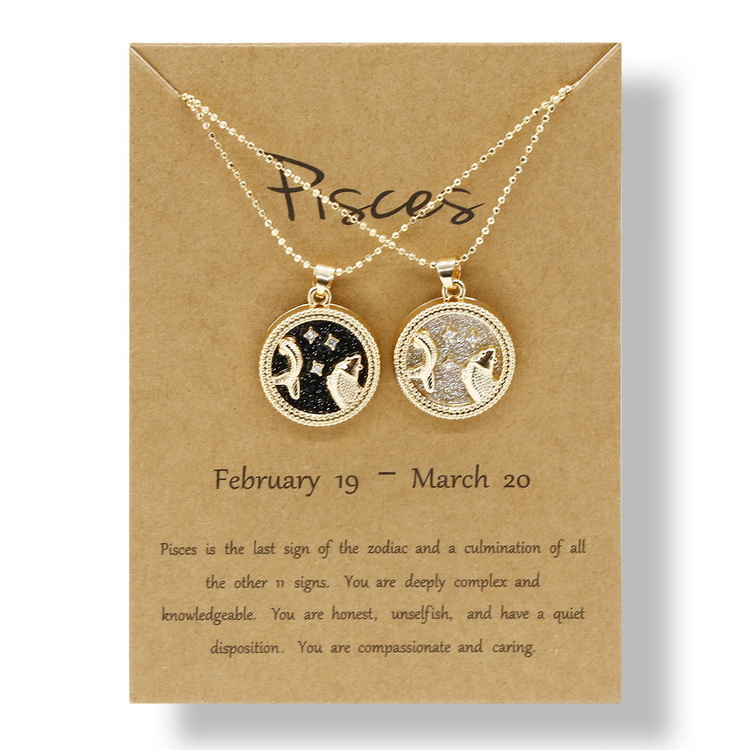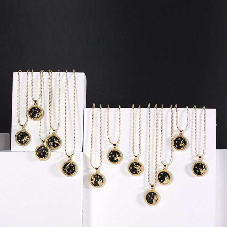 Cross-Border Hot Selling Coin Alloy Clavicle Chain Golden Day and Night Necklace Twelve Constellations Couple Bestie Necklace