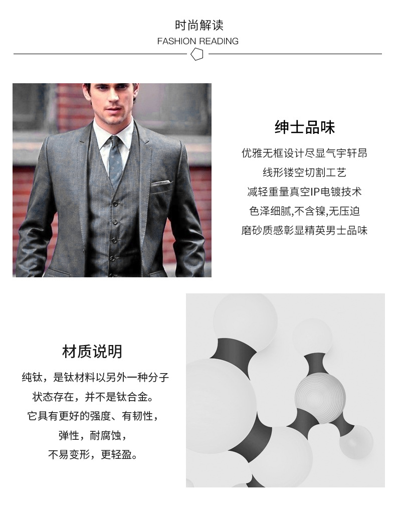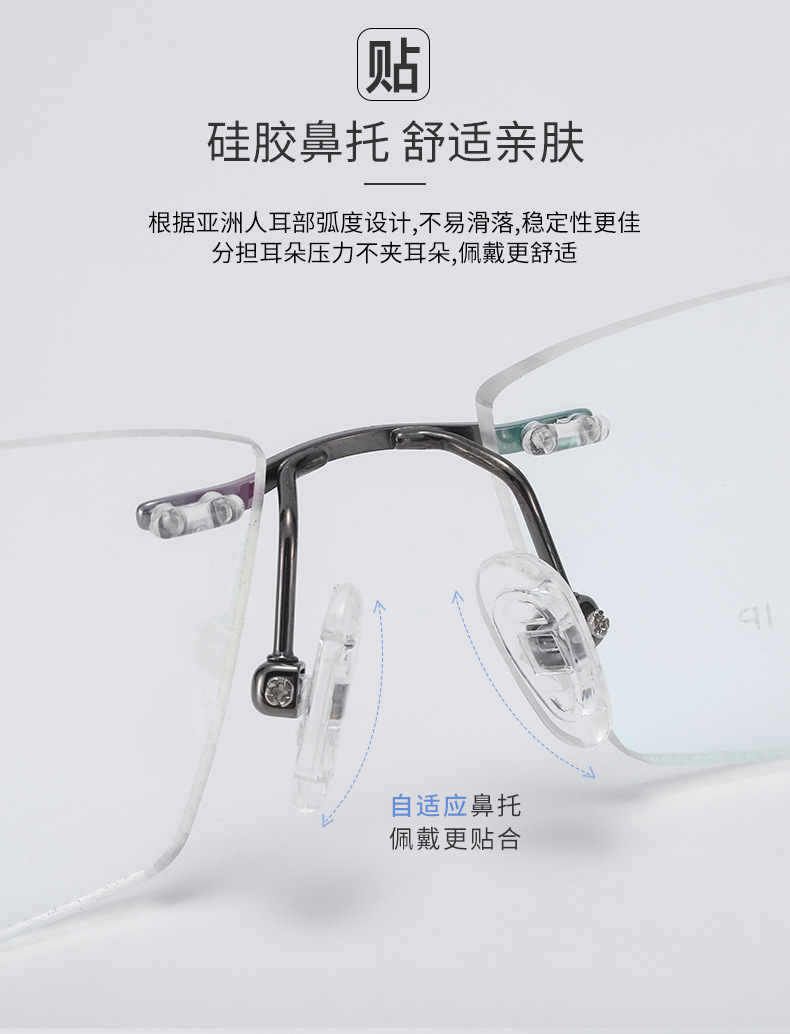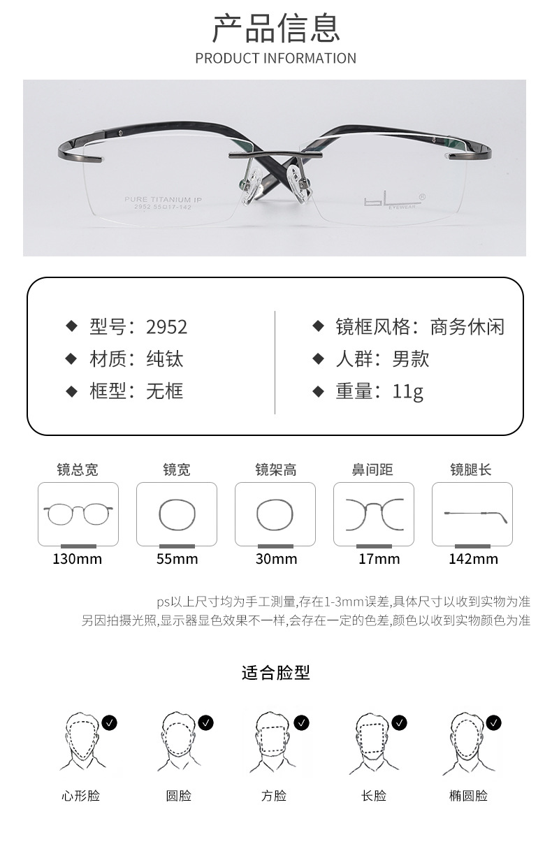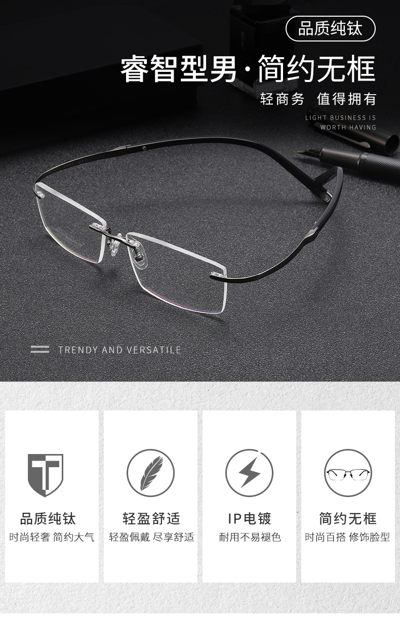 BL white-collar Noble pure titanium men's frameless super elastic temples do not clip face IP plating factory direct 2952