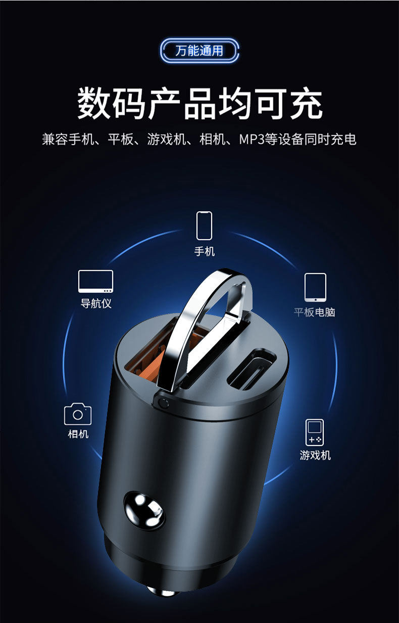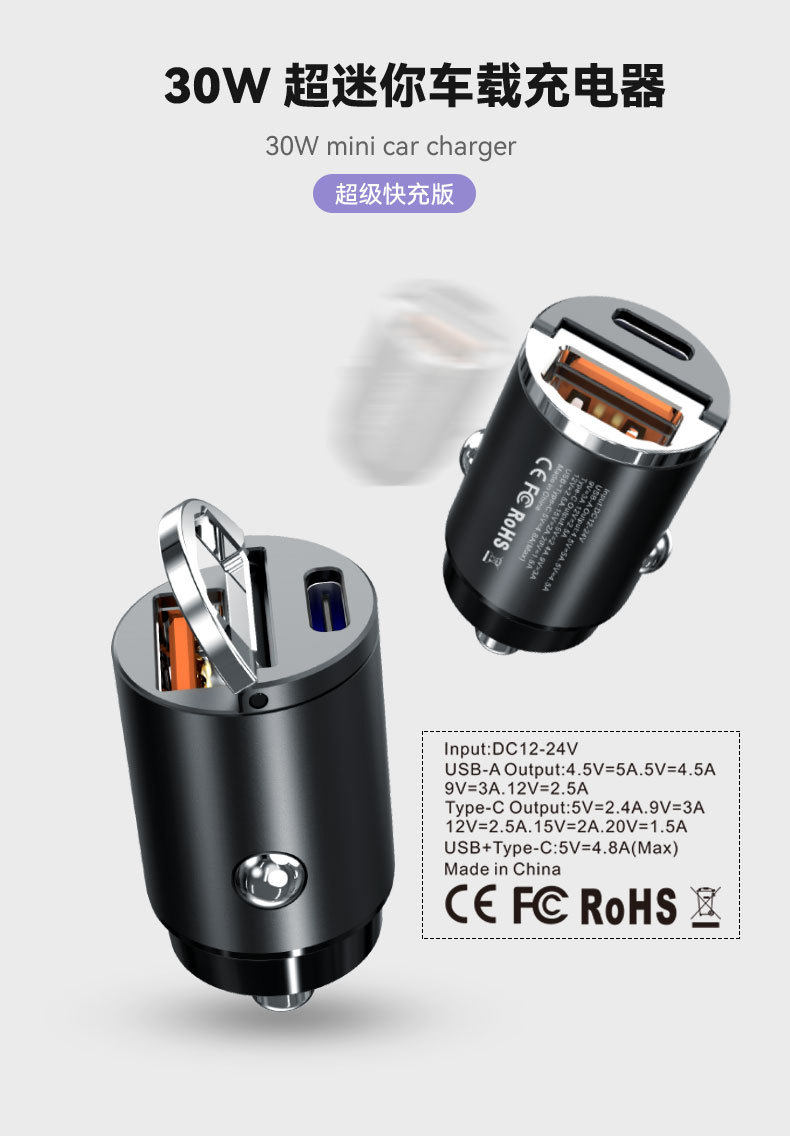 Super Fast Charging Pull Ring Dual USB Alloy 5A Car Charger New Qc3.0 Car Charger Pd 30W Mini Car Charger