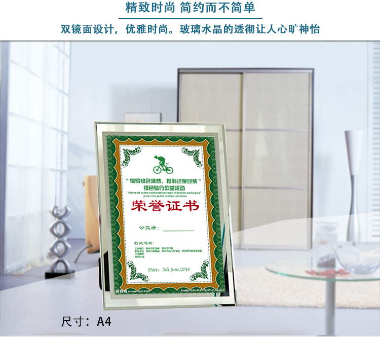 Certificate of Honor Authorization Certificate Business License Graduation Wedding Photo Studio Frame A4 Horizontal and Vertical Crystal Glass Photo Frame