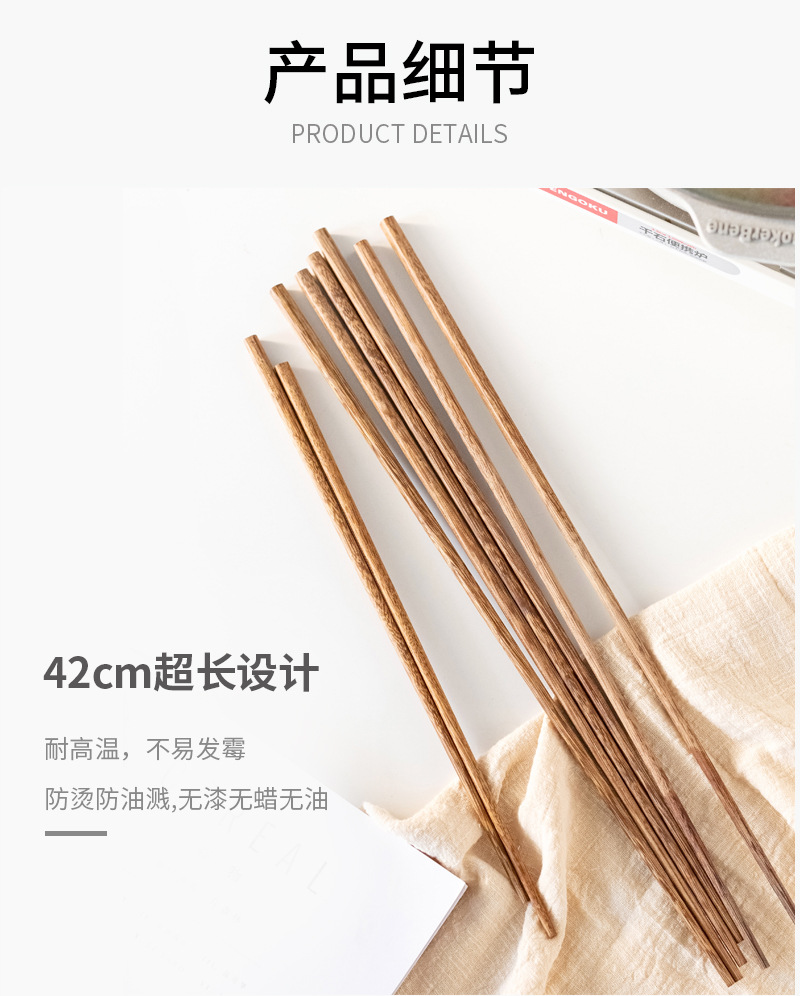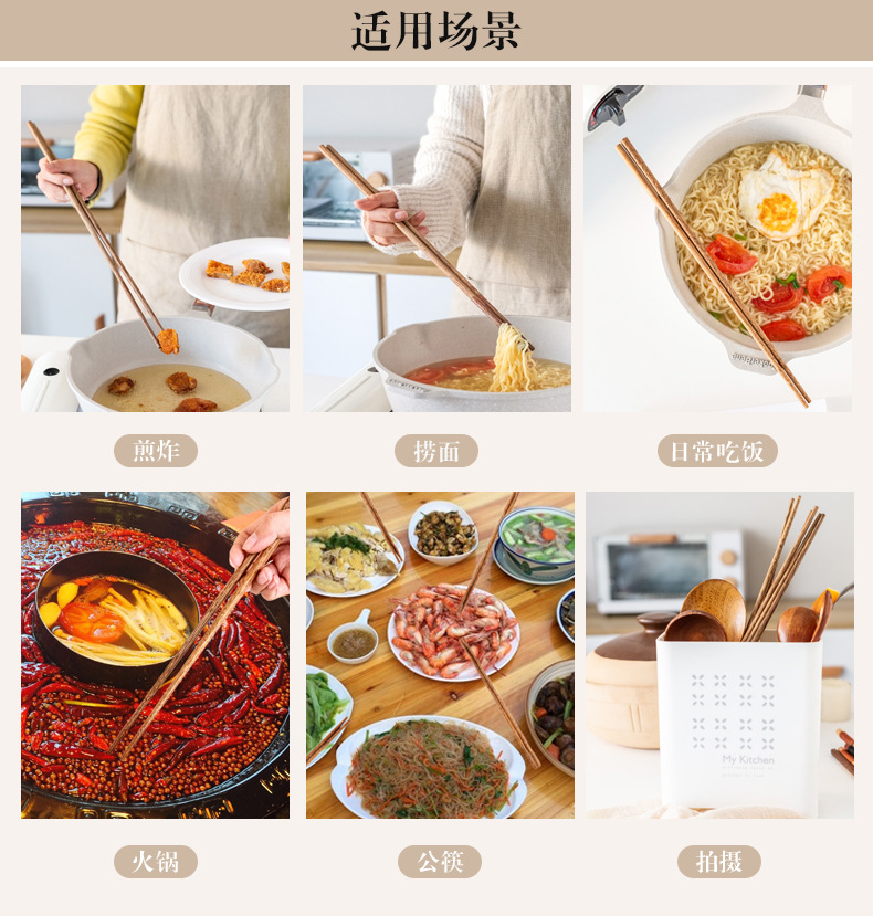 Chicken wing Wood lengthened chopsticks fried high temperature resistant 42cm hot pot chopsticks thick Fryer stick kitchen household public chopsticks non-slip