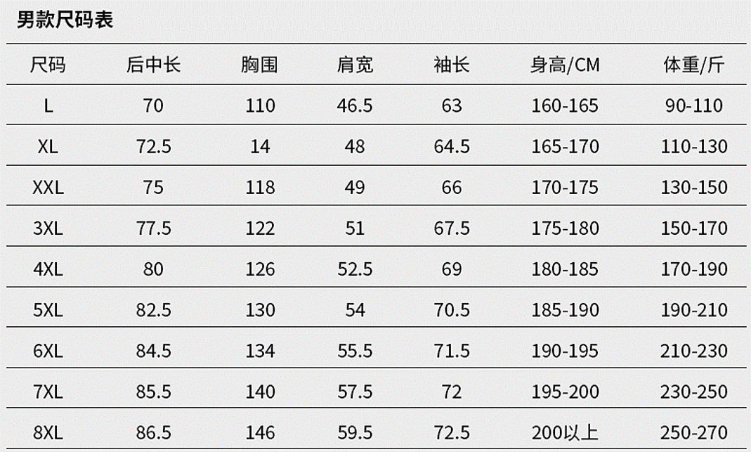 | Size | L,XL,2XL,3XL,4XL,5XL,6XL,7XL,8XL |