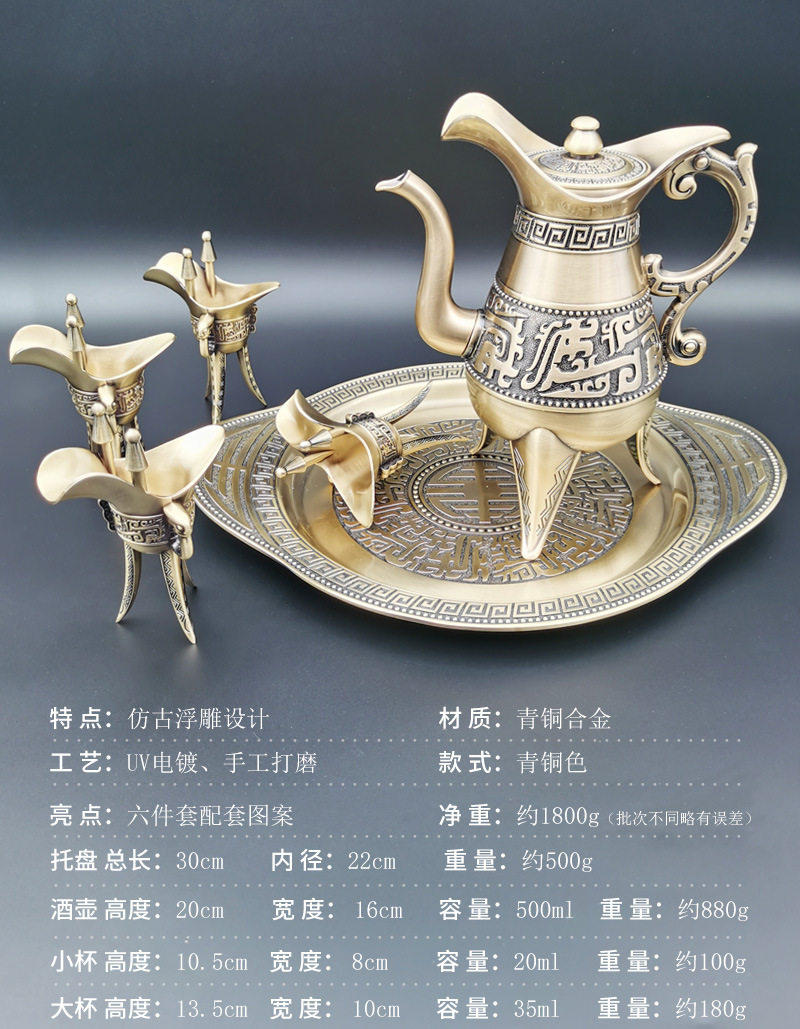 Spot wholesale bronze wine set wine dispenser Chinese liquor pot antique wine glass goblet wine bottle gift box