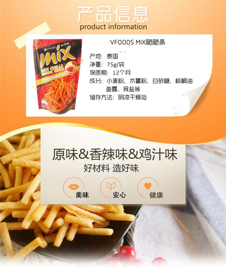 Imported from Thailand Vfoods Mix Crispy Strips 75g Mimi Strips Puffed Snacks Casual Snacks Internet Celebrity French Fries Gift