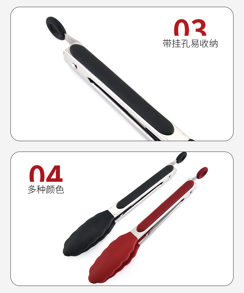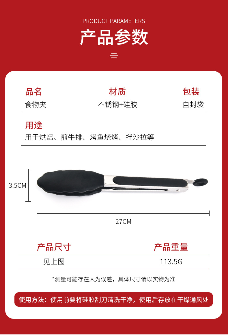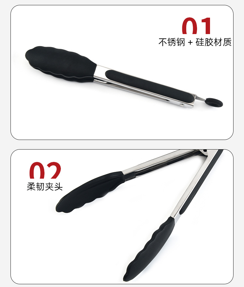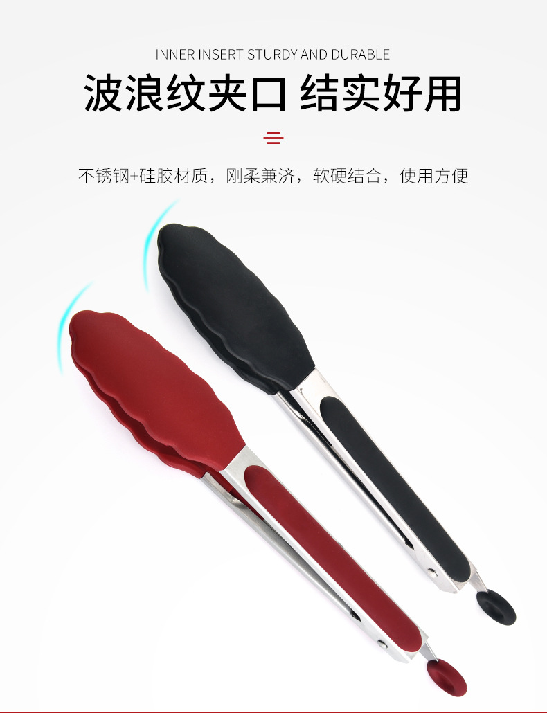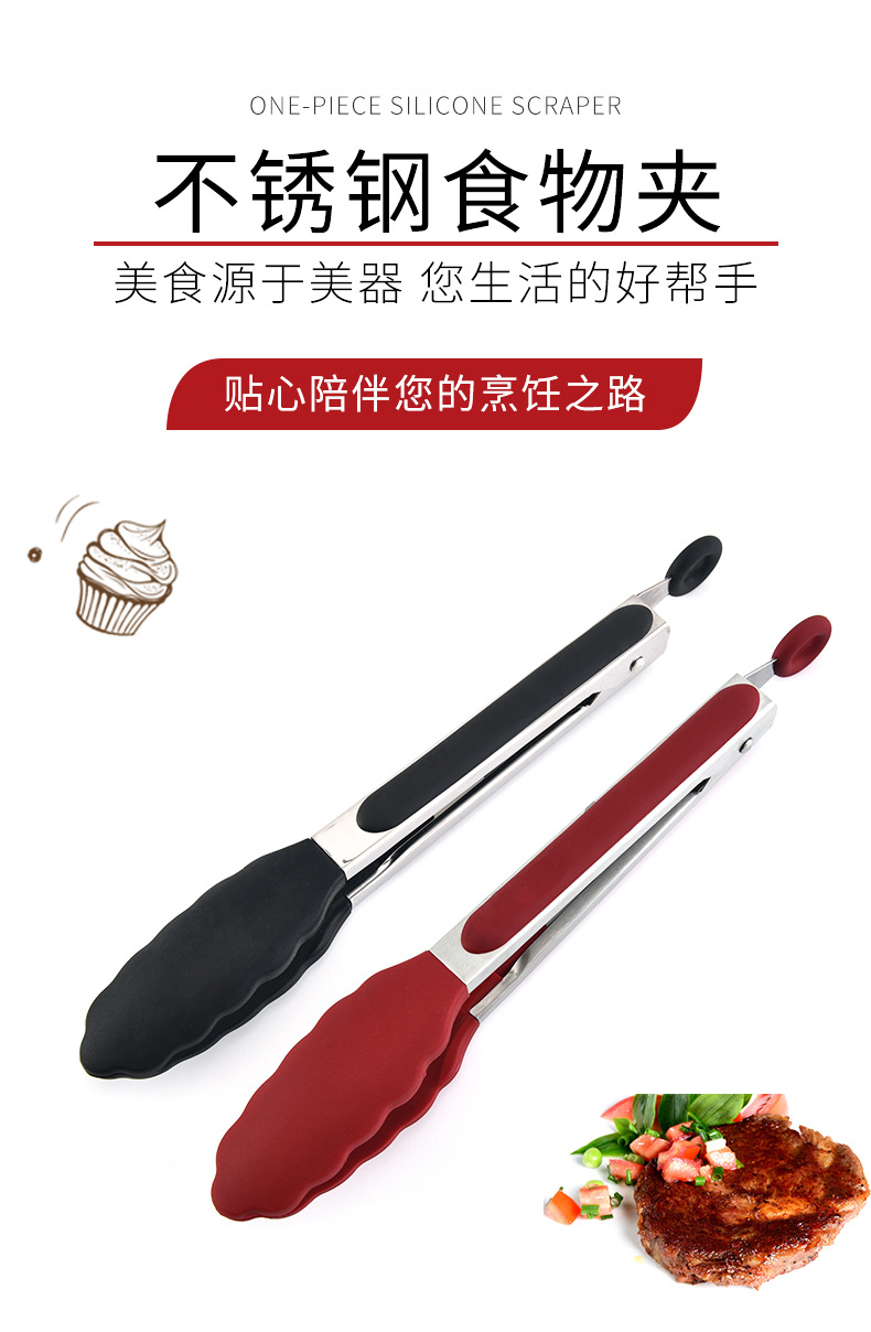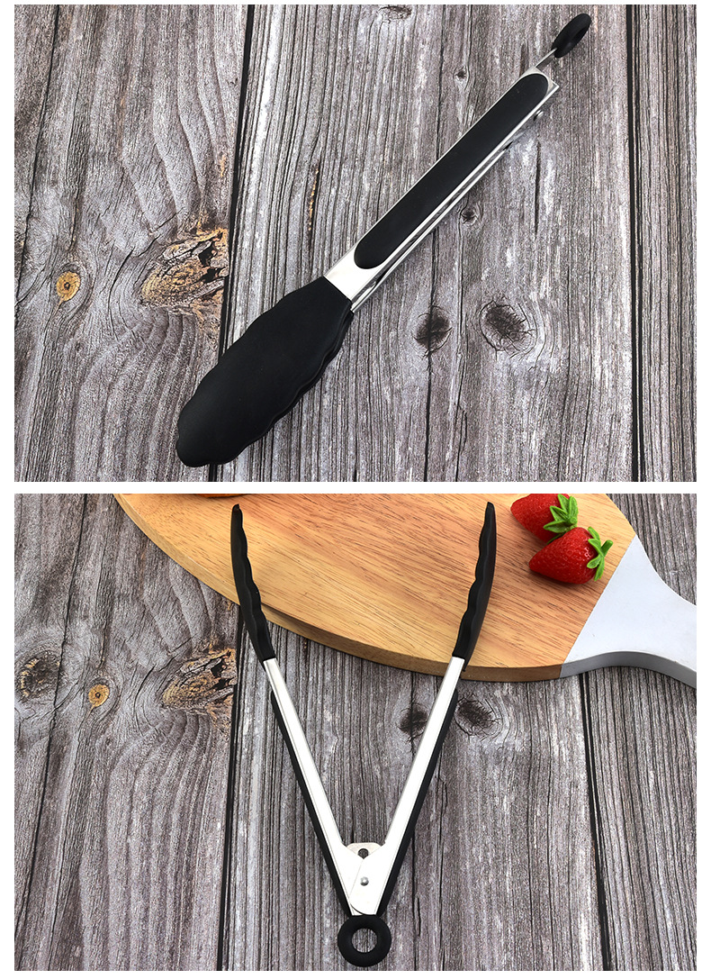 Silicone food clip BBQ Barbecue clip food clip stainless steel 9 inch food clip steak clip baking tools in stock