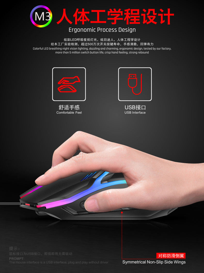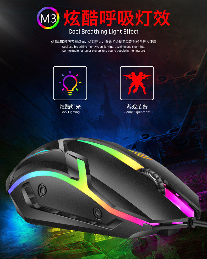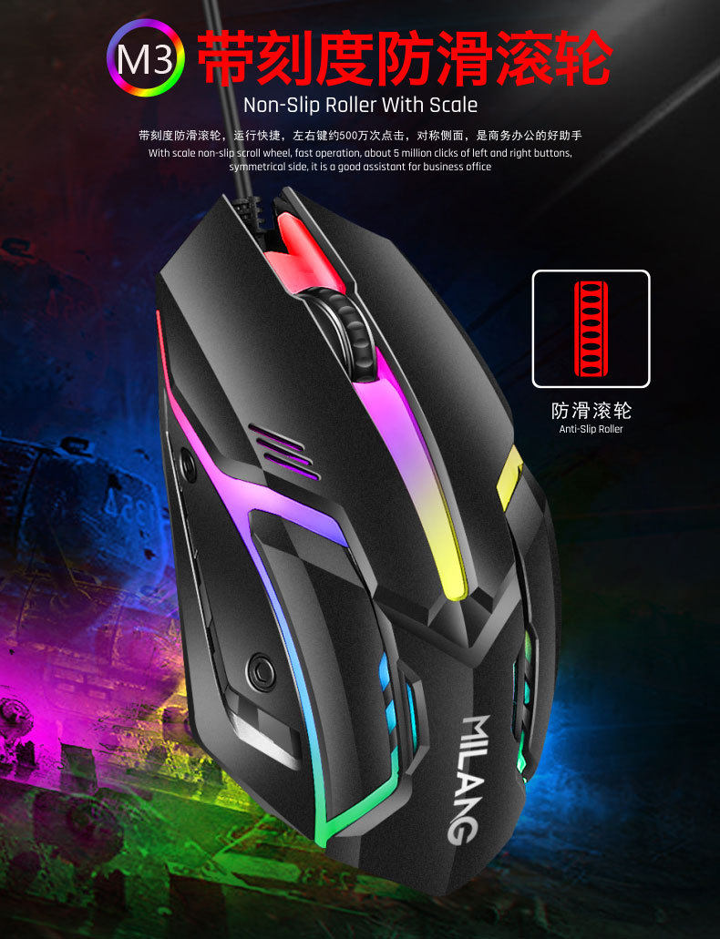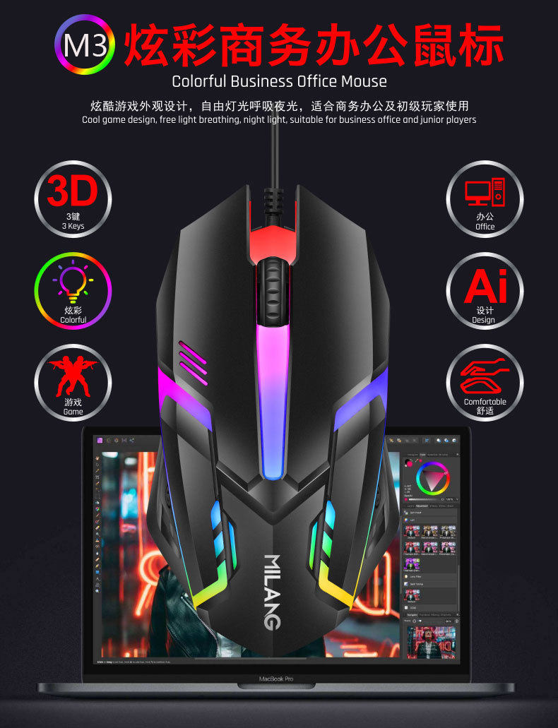 Mi Lang M3 Rainbow Luminous Wired USB Mouse Desktop Computer Notebook E-Sports Office Business Game Mouse